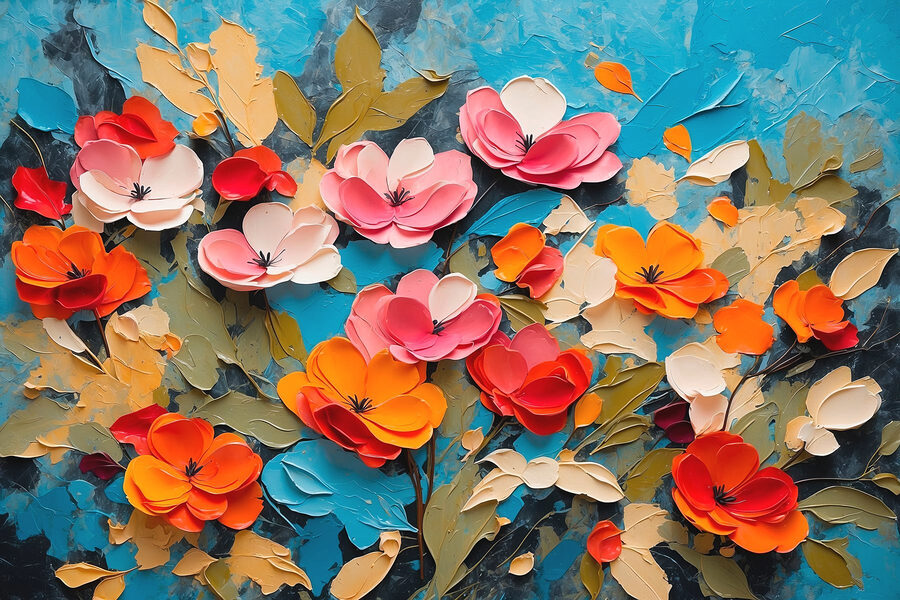 Fleur elke kamer op met deze prachtige canvasprint met levendige bloemen die dansen tegen een opvallende blauwe achtergrond. Het is alsof er een tuin op de muren uitbarst en brengt dat frisse lentegevoel binnenshuis, zonder dat je groene vingers nodig hebt. Elke bloem straalt persoonlijkheid uit – stel je eens voor hoe het een gezellige hoek of een levendige ontmoetingsruimte zou kunnen opvrolijken. Vrienden zullen het zeker bewonderen en misschien zelfs bewust glimlachen, alsof ze de bloeiende bloemblaadjes bijna kunnen ruiken. Het is een gespreksstarter, een vleugje geluk – perfect voor mensen die houden van kunst die levendig en een beetje speels aanvoelt. Zeker een must-have voor bloemenliefhebbers!