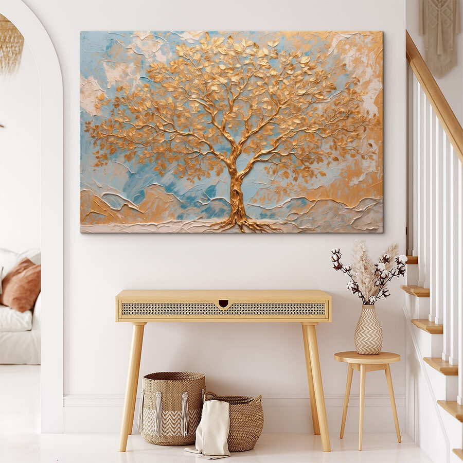 Transformeer elke kamer met de fascinerende charme van deze artistieke canvasprint. Stel je voor dat je een stap achteruit zet en de rust over je heen voelt spoelen, als een zacht briesje dat door de takken ruist. De boom, die fier afsteekt tegen een serene achtergrond, blaast leven in elke muur, creëert momenten van contemplatie of biedt gewoon een heerlijke afleiding tijdens de dagelijkse drukte. Het is niet zomaar een kunstwerk; het fluistert verhalen uit de natuur terwijl het een vleugje warmte en kleur toevoegt. Perfect voor gezellige hoekjes of die muur die wel wat persoonlijkheid kan gebruiken – deze print is er voor jou!