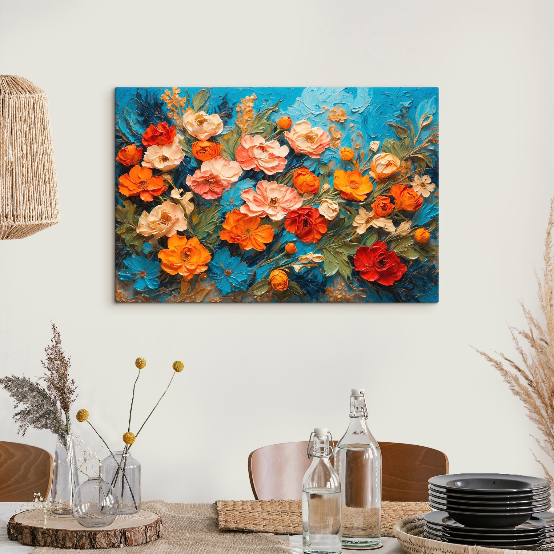 Stel je voor dat je een kamer binnenloopt en begroet wordt door een uitbarsting van kleurrijke bloemen – deze canvasprint van bloemen op een levendige blauwe achtergrond doet precies dat! Het is alsof een lentetuin zijn weg naar binnen heeft gevonden en een vrolijke knipoog geeft aan iedereen die langsloopt. Elke bloem lijkt zo van het canvas af te springen met rijke kleuren die levendig aanvoelen. Je kunt de verse bloemblaadjes bijna ruiken, nietwaar? Perfect om saaie hoekjes op te fleuren of een relaxte ruimte een vleugje kleur te geven. Het is net alsof je de vreugde van de natuur aan je muur hebt hangen – water geven is niet nodig! En misschien inspireert het iemand wel om echte bloemen mee naar huis te nemen. Dus wie heeft er een groene vingers nodig? Neem gewoon deze schoonheid en laat hem bloeien!