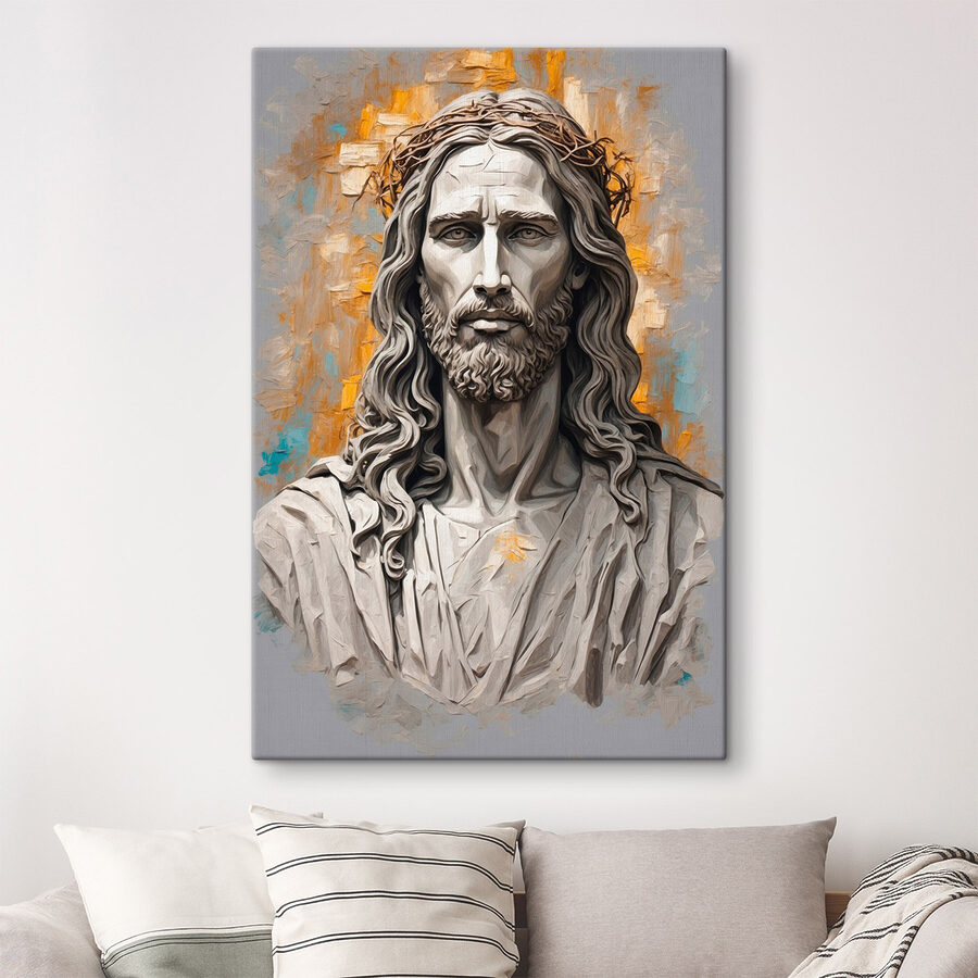 Deze prachtige canvasprint van een man gekroond met doornen is meer dan gewoon decor – het is een conversatiestarter. Stel je voor dat het aan de muur hangt en je ruimte een bedachtzame sfeer geeft. De fijne details in de uitdrukking van de figuur voelen bijna levend aan, waardoor kijkers worden aangespoord om even stil te staan en na te denken.