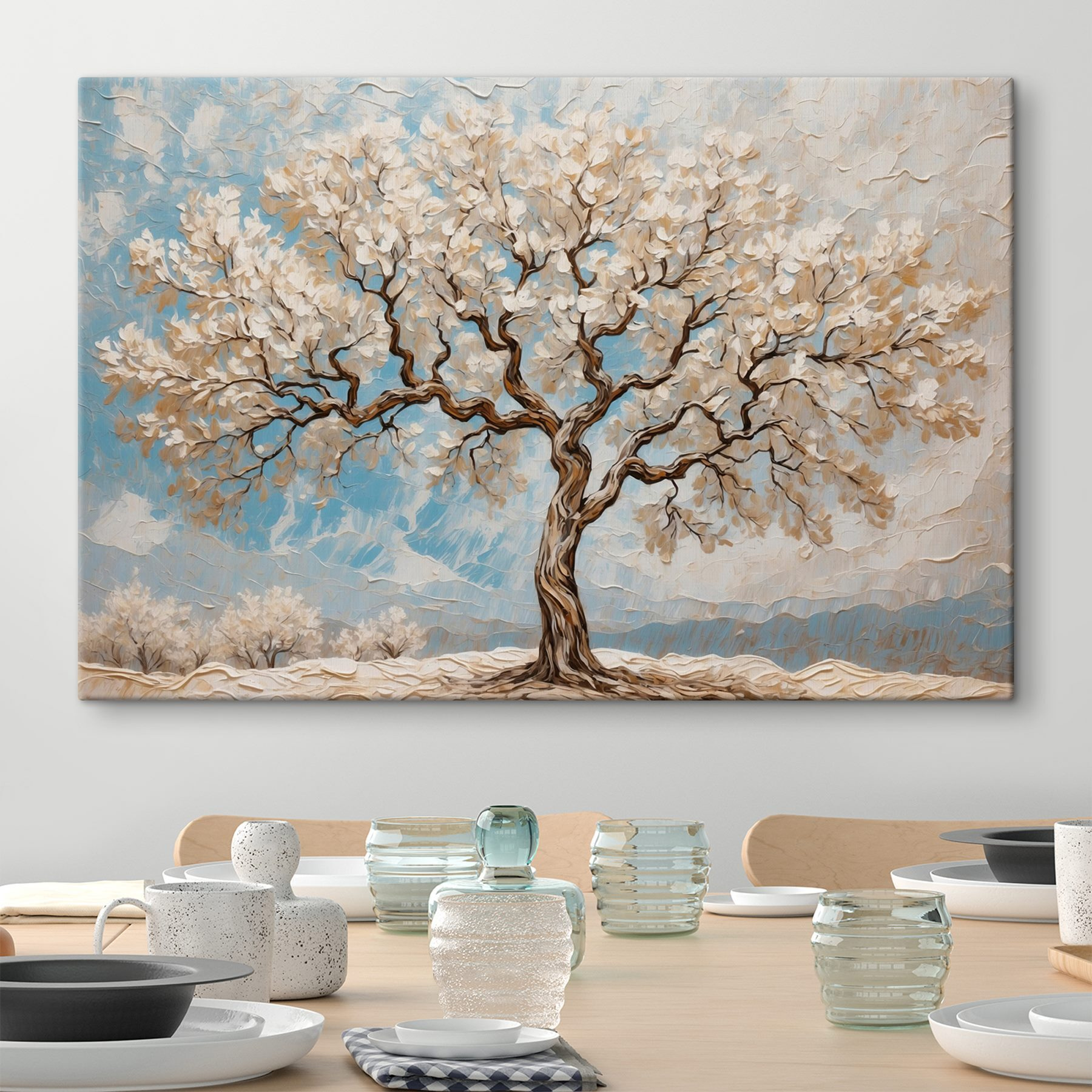 Fleur elke ruimte op met deze canvasprint, “Canvas Schilderijen Schilderij van een boom”, die aanvoelt als een frisse wind. Stel je voor dat je een kamer binnenloopt en het eerste wat je ziet is deze prachtige boom, zijn takken wijd uitgespreid tegen een serene blauwe lucht. Het is alsof de natuur heeft besloten een kopje koffie te komen drinken. De kleuren dansen samen en brengen een gevoel van rust en een vleugje eigenzinnigheid. Perfect voor een gezellig hoekje of die lege muur die je al tijden veroordeelt. Het brengt een beetje buiten naar binnen en geeft je een warm en donzig gevoel, zoals een knuffel van Moeder Natuur zelf. Hang het op en zie hoe je ruimte verandert, waardoor iedereen zich afvraagt of je opeens een kunstkenner bent geworden. Misschien raak je wel aan de praat met vrienden en deel je verhalen terwijl je doet alsof je alles weet over bomen en hun levensdoelen. Wie wist dat decor zoveel vreugde kon opwekken?