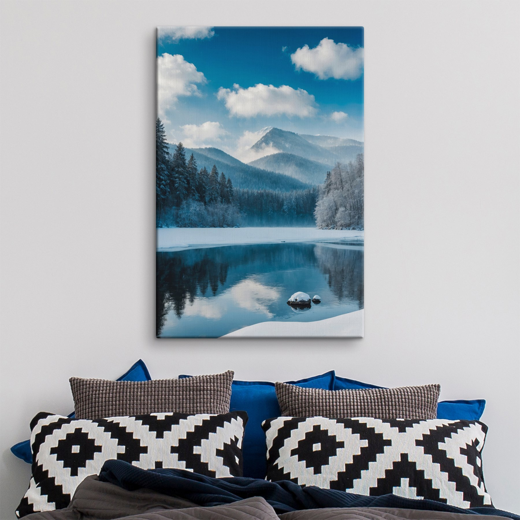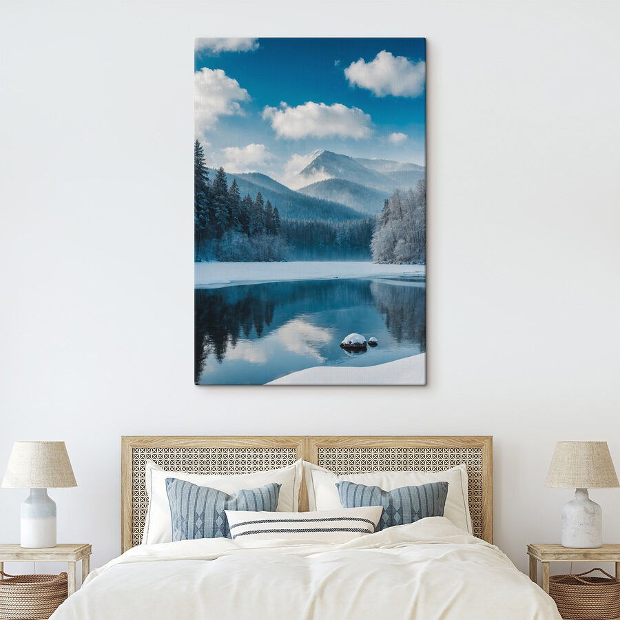 Tover elke ruimte om in een winterwonderland met deze fascinerende canvasprint van een sereen meer, gedrapeerd in een besneeuwde omhelzing. Je kunt het kraken van de sneeuw onder je voeten bijna horen en de frisse, frisse lucht voelen! De torenhoge bomen die trots rond het water staan weerspiegelen de perfecte kalmte van de natuur en fluisteren geheimen van rust. Stel je voor dat je in een stoel gaat zitten, warme chocolademelk in de hand, met deze schoonheid in de buurt. Het is alsof je een stukje vredige wildernis in huis hebt – je hebt geen wandelschoenen nodig! Perfect voor iedereen die hunkert naar een vleugje magie van de natuur, deze print brengt het buitenleven in huis – zonder bevriezing!