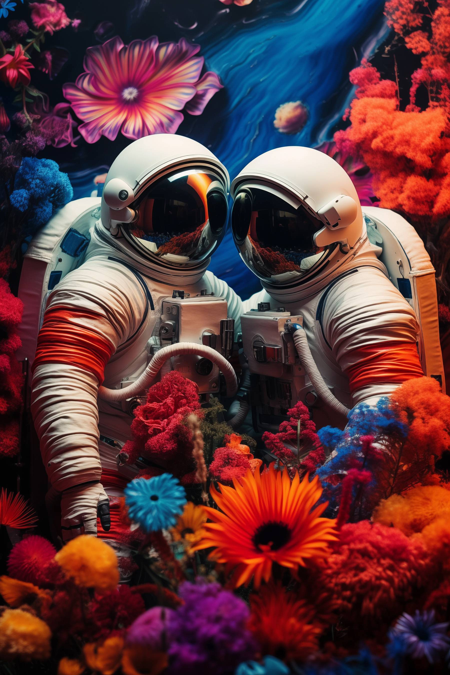 Stap in een wereld waar de ruimte en de natuur elkaar ontmoeten, gewoon in je woonkamer! Deze levendige canvasprint met twee astronauten omringd door een overvloed aan kleurrijke bloemen brengt je naar een droomachtig sterrenstelsel. Stel je de gesprekken voor die dit kunstwerk zou kunnen ontketenen, terwijl vrienden naar deze dappere ruimteverkenners tussen de bloemen staren. Het is de perfecte mix van avontuur en eigenzinnigheid. Wie had gedacht dat kosmos en bloemblaadjes zo goed samen konden gaan? Dit kunstwerk decoreert niet alleen; het nodigt je uit om je geïnspireerd, nieuwsgierig en misschien een beetje nostalgisch te voelen over bloemenprints die iedereen altijd lijken op te vrolijken. Perfect voor een woonkamer, kantoor of waar dan ook waar een vleugje persoonlijkheid nodig is. Echt, wat is er leuker dan astronauten die chillen met bloemen?