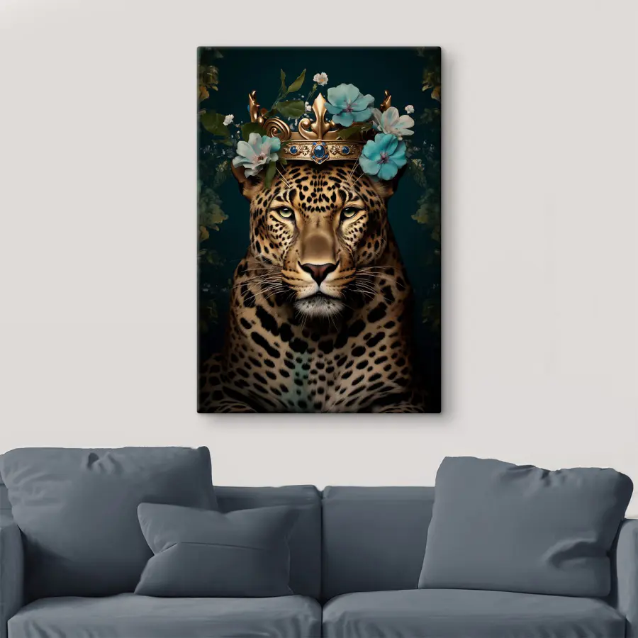 Maak kennis met de koninklijke luipaard die niet zomaar een grote kat is. Deze canvas print, versierd met een charmante kroon en delicate bloemen, geeft een hele nieuwe betekenis aan “royalty”. Stel je voor dat deze opvallende schoonheid de aandacht opeist aan je muur en een knusse maar wilde sfeer brengt in je interieur. Het is alsof je een majestueuze beschermer hebt die modieus en woest is! Perfect voor een woonkamer of een eigenzinnig kantoor, het zal zeker gesprekken losmaken. En die prachtige kleuren? Ze kunnen iemand inspireren om een wandeling door de natuur te maken – of er in ieder geval over na te denken onder het genot van een kopje koffie. Elke blik op dit object kan je meevoeren op een mini-avontuur.