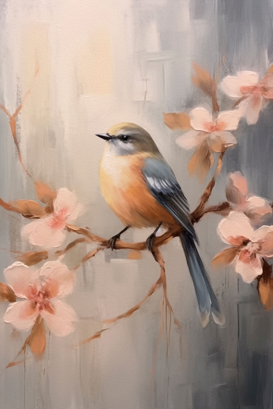 Haal een vleugje natuur in huis met deze charmante canvasprint met een schattige vogel genesteld op een delicate tak versierd met zachtroze bloemen. Het is alsof je een stukje van de buitenwereld in je woonkamer hebt. Stel je voor dat je aan je koffie nipt terwijl dit levendige tafereel je dag opfleurt. De zachte kleuren roepen een gevoel van rust op, waardoor het perfect is voor gezellige hoekjes of een serene slaapkamer sfeer. En wie zou er niet glimlachen om een vrolijke vogel die de wacht houdt? Het is niet alleen decor; het is een kleine herinnering om even stil te staan en de eenvoudige schoonheid van het leven te waarderen.