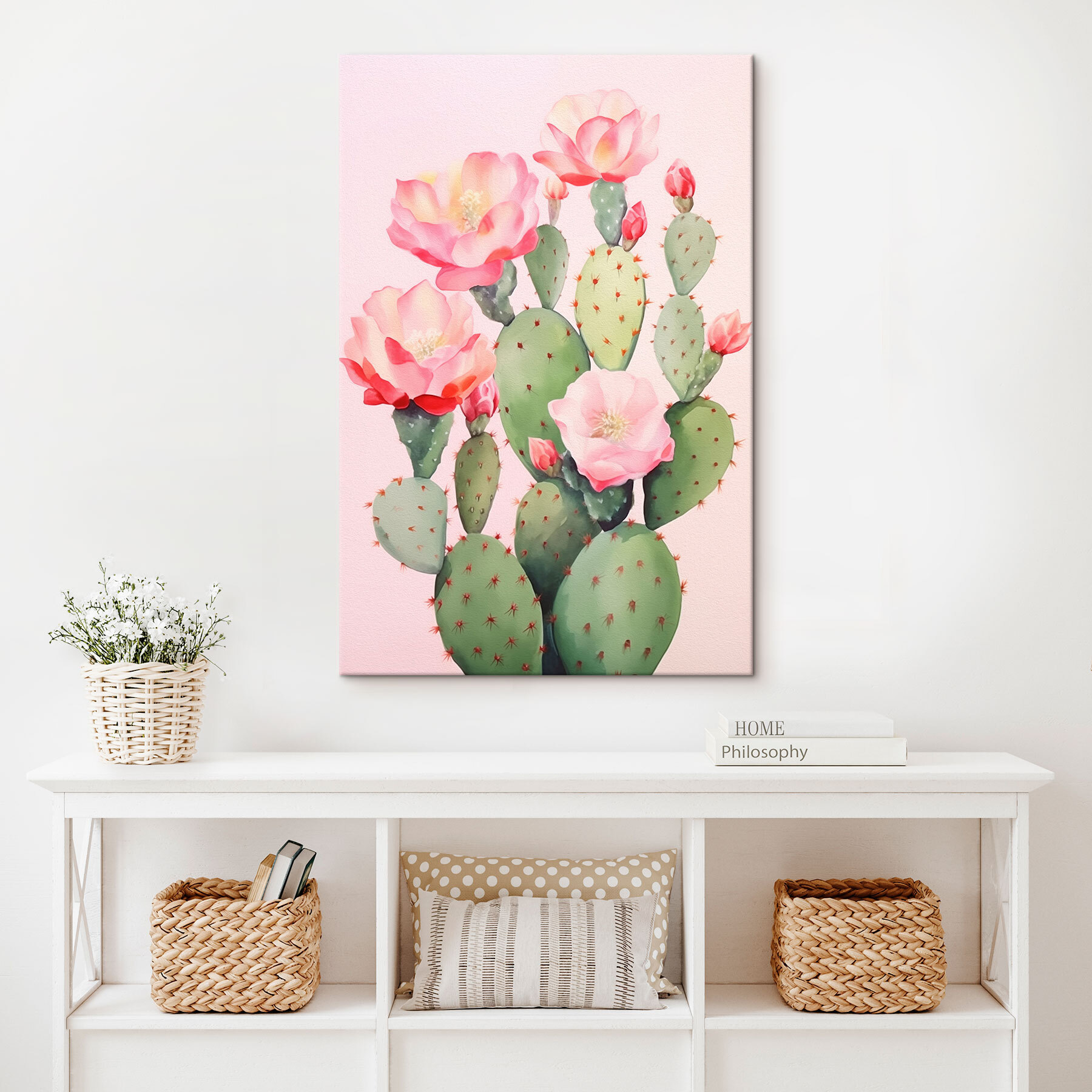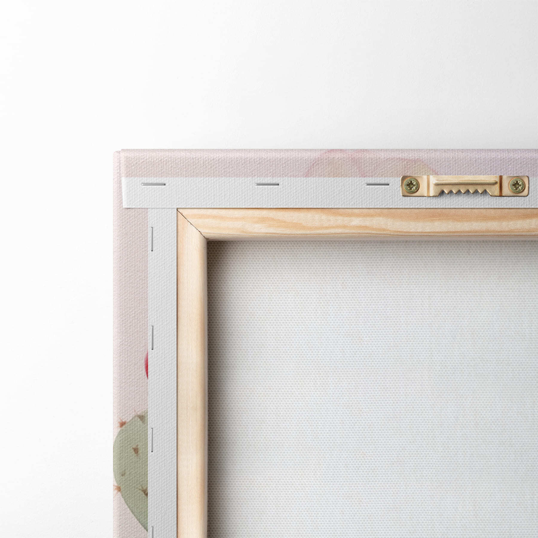 Transformeer je kamer met deze prachtige canvasprint, met een levendige cactus versierd met bloeiende bloemen. Het is alsof je een stukje woestijn naar je woonkamer brengt – zonder de stekels! De zachte roze en groene tinten creëren een feelgood vibe, perfect om elk hoekje op te fleuren. Stel je voor dat je ‘s ochtends aan je koffie nipt en je koestert in de warmte van dit vrolijke kunstwerk. Het heeft die mooie mix van natuur en charme, plus het is een geweldige gespreksstarter – wie wist dat cactussen er zo fantastisch uit konden zien? Voeg een vleugje natuurschoon toe aan je collectie!