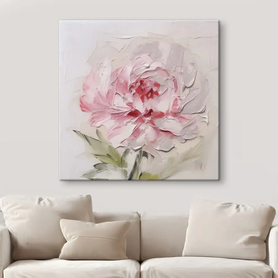 De subtiele pastelkleuren roepen warme gevoelens op, bijna alsof de bloemen zoete woordjes fluisteren. Stel je voor dat je van een kopje thee geniet in een comfortabele stoel, terwijl dit kunstwerk een vredige sfeer aan je dag toevoegt. Het is perfect voor bloemenliefhebbers of iedereen die een vleugje zachtheid aan zijn interieur wil toevoegen. Een mooie manier om die saaie muren op te fleuren!