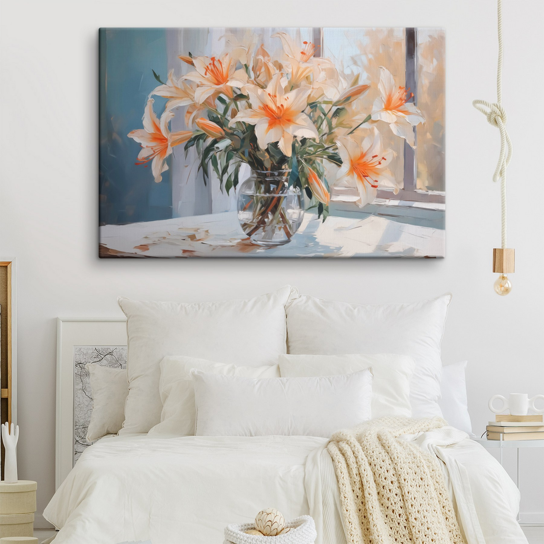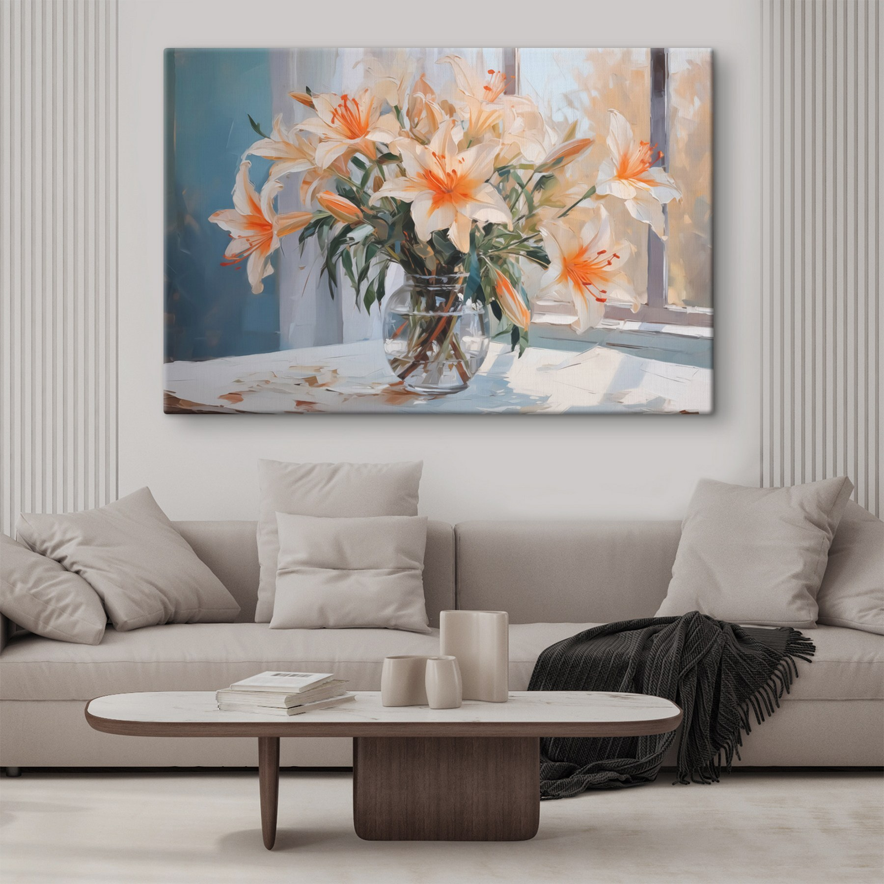 Fleur elke ruimte op met deze prachtige canvasprint van een vaas vol bloemen. Het is alsof je een tuintje in huis haalt zonder dat je het water hoeft te geven. Zie het al hangen in een gezellig hoekje, waar het licht precies goed valt en de hele kamer een beetje warmer aanvoelt – perfect voor een kopje koffie of een rustige middag. Stel je de glimlachen voor als gasten die vrolijke bloemen opmerken en gesprekken beginnen over favoriete bloemen of zelfs mislukte tuinierpogingen. Dit stuk is meer dan alleen decor; het is een heerlijke herinnering aan de schoonheid van de natuur en nodigt uit tot een beetje zonneschijn in het dagelijks leven.