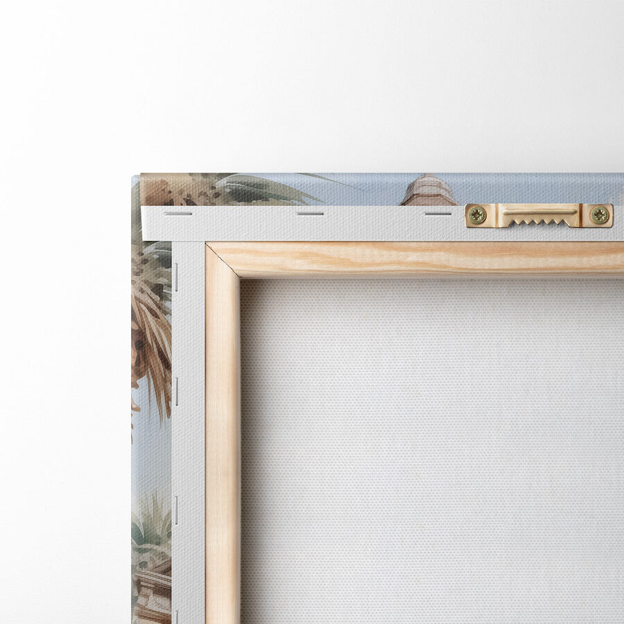 Transformeer je ruimte met deze prachtige aquarel canvasprint met een charmant gebouw met een toren, omringd door weelderig groen. Stel je eens voor hoe dit stuk je gasten aantrekt en gesprekken op gang brengt over reizen, architectuur of die keer dat je per ongeluk een botanische tuin binnenwandelde. De zachte kleuren creëren een serene sfeer, perfect voor woonkamers of gezellige hoekjes. Of je nu koffie drinkt of in een goed boek duikt, dit kunstwerk nodigt uit tot een moment van vredige reflectie. Over een heerlijke ontsnapping in je eigen huis gesproken!