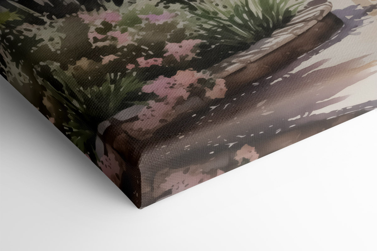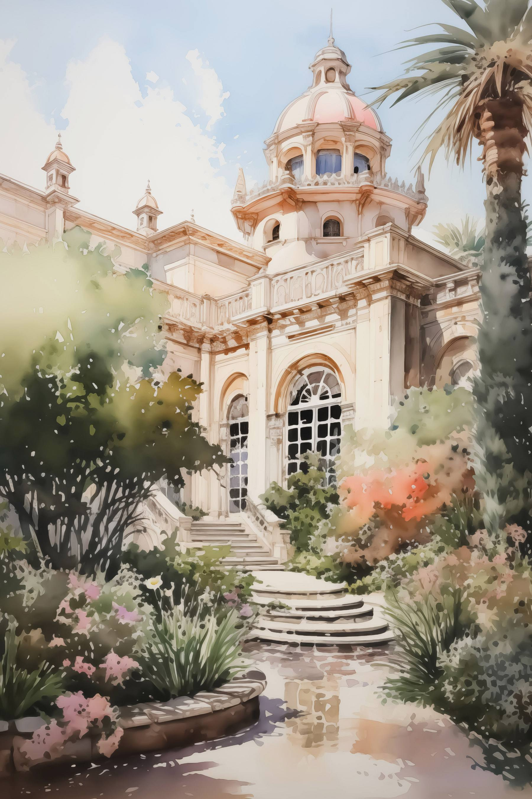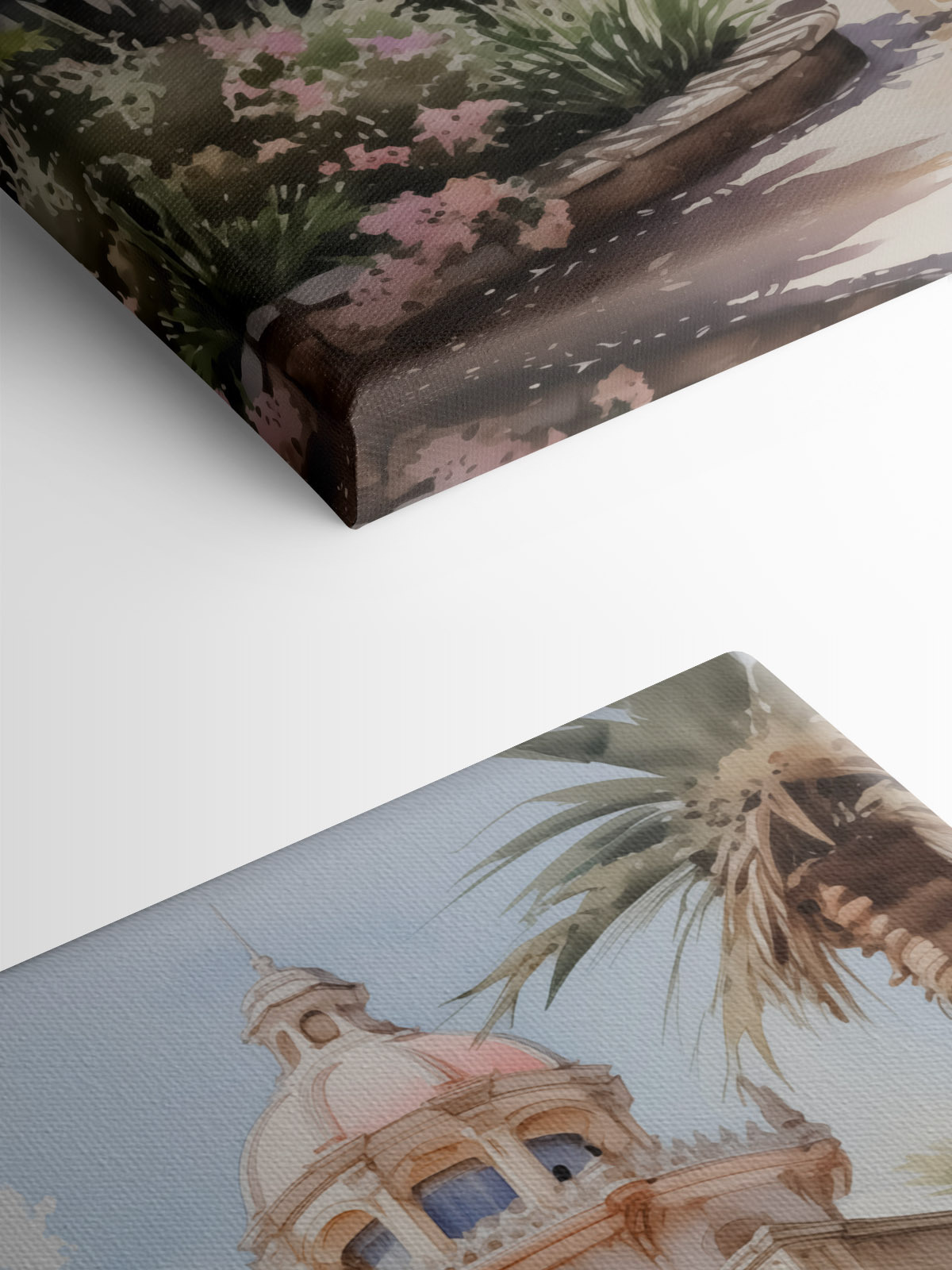Transformeer je ruimte met deze prachtige aquarel canvasprint met een charmant gebouw met een toren, omringd door weelderig groen. Stel je eens voor hoe dit stuk je gasten aantrekt en gesprekken op gang brengt over reizen, architectuur of die keer dat je per ongeluk een botanische tuin binnenwandelde. De zachte kleuren creëren een serene sfeer, perfect voor woonkamers of gezellige hoekjes. Of je nu koffie drinkt of in een goed boek duikt, dit kunstwerk nodigt uit tot een moment van vredige reflectie. Over een heerlijke ontsnapping in je eigen huis gesproken!