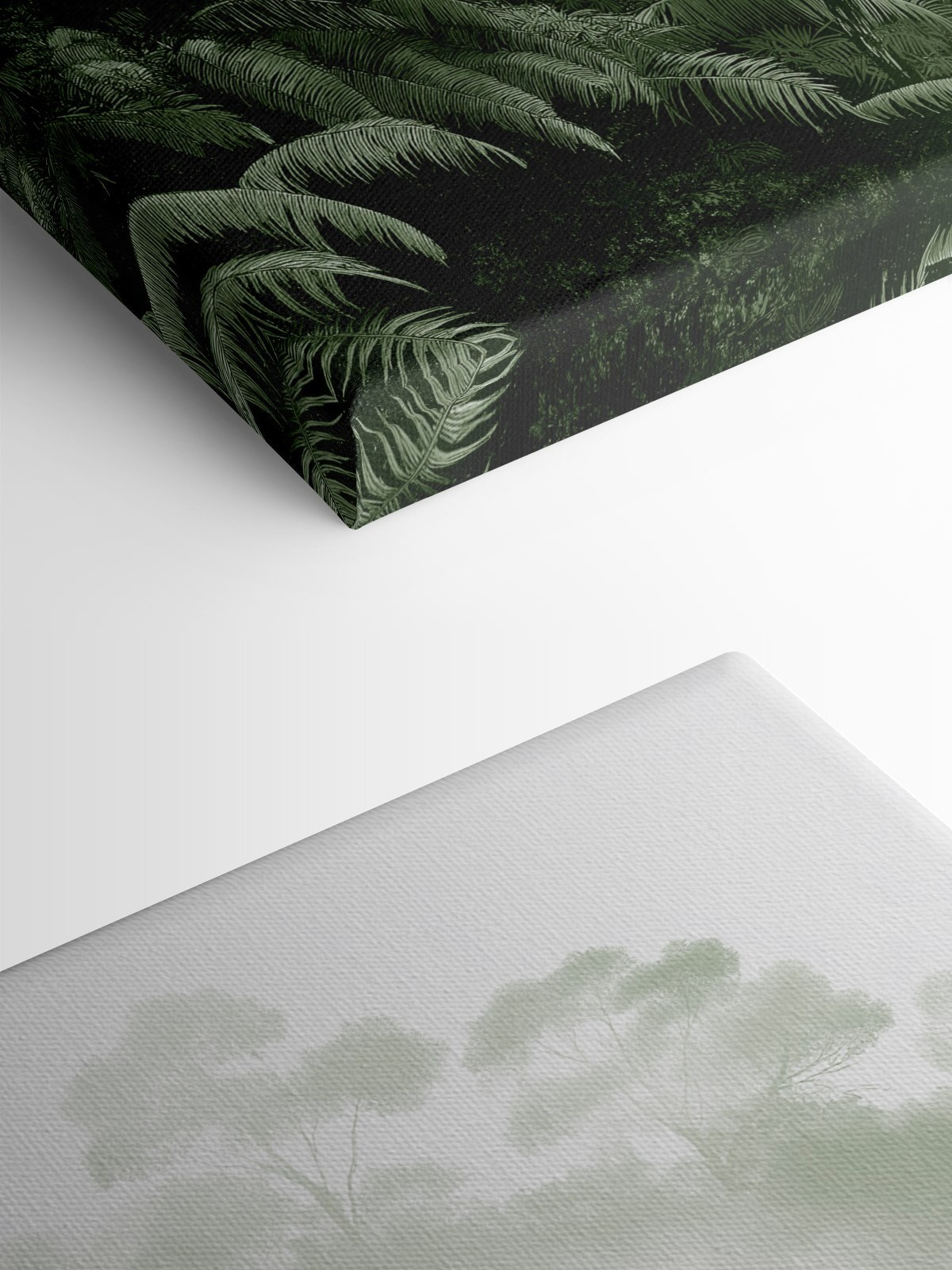 Verplaats jezelf naar een vredige ontsnapping met deze prachtige canvasprint met een groep palmbomen in een weelderig bos. Stel je voor dat je door een sereen, mistig bosje loopt, de lucht gevuld met de subtiele geuren van de natuur. Dit kunstwerk siert niet alleen een muur, maar zorgt ook voor een frisse wind in je interieur.