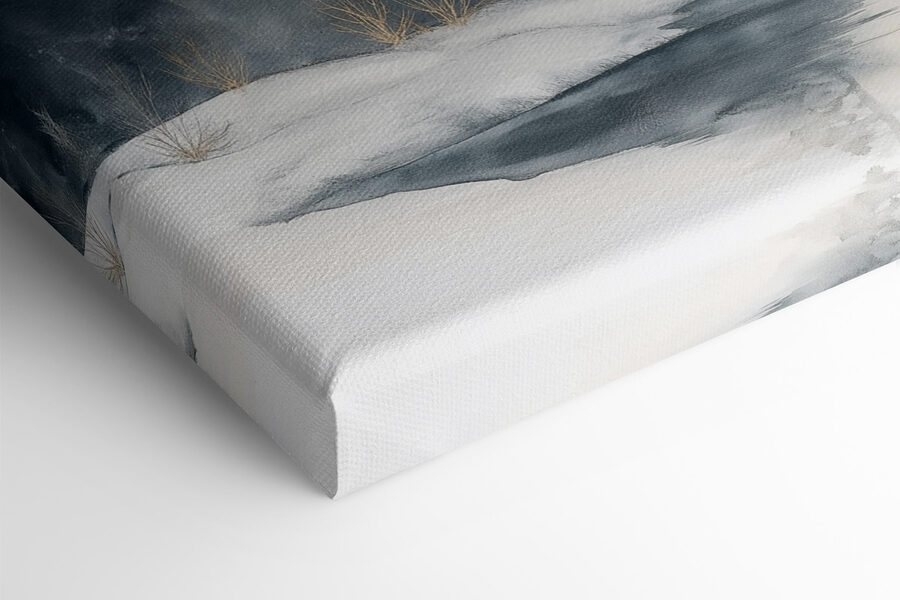 Stap in een serene ontsnapping met dit “Aquarel Schilderij van een Besneeuwd Bos”. Stel je de zachte stilte voor van vallende sneeuwvlokken terwijl dit dromerige tafereel je muur opfleurt. De delicate mix van wit en gedempt groen doet denken aan een gezellige hut in je woonkamer. Perfect voor mensen die de rust van de natuur waarderen, het voelt als een warme knuffel op een kille dag. En bedenk eens hoe het een gesprek op gang brengt – “Zie ik daar een beetje wintermagie?”. Voeg het toe aan je huis en verander je ruimte in een handomdraai in een vredig toevluchtsoord in het bos, zonder de wandelschoenen!