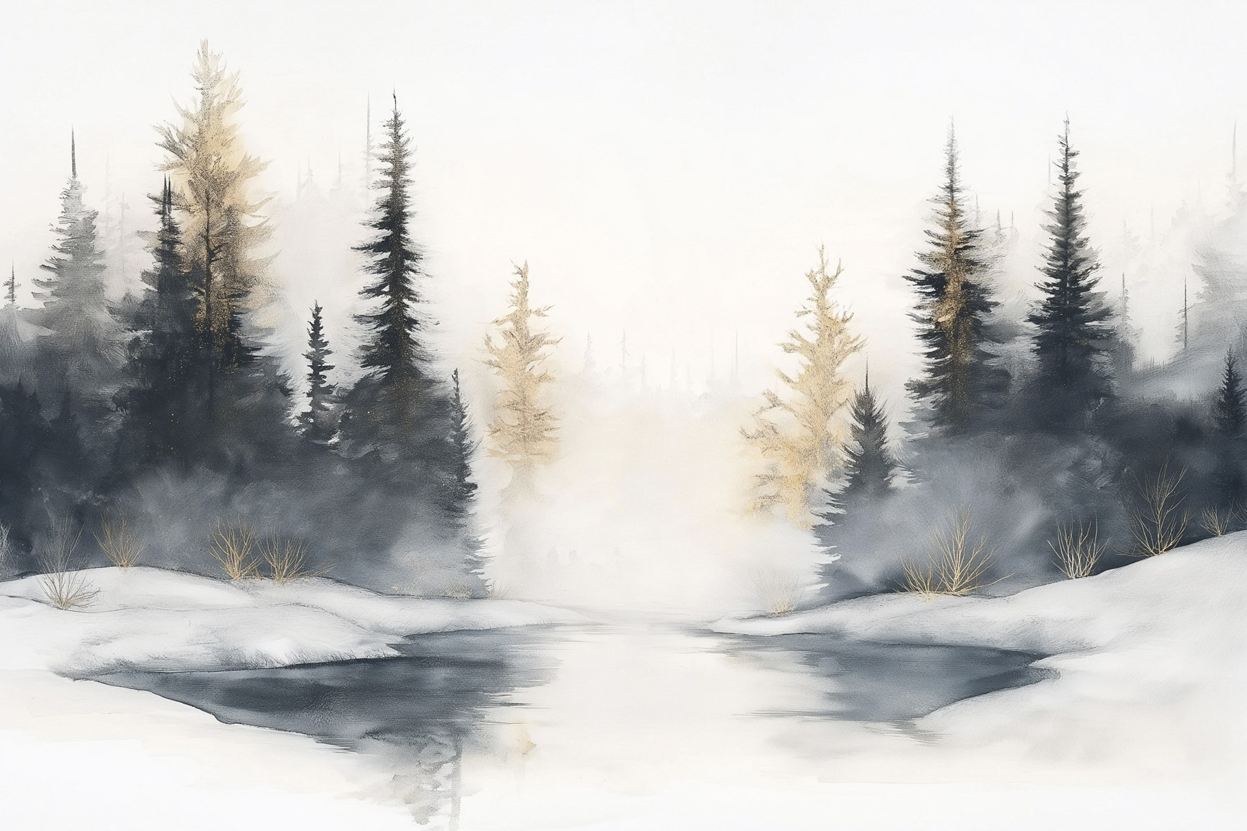 Stap in een serene ontsnapping met dit “Aquarel Schilderij van een Besneeuwd Bos”. Stel je de zachte stilte voor van vallende sneeuwvlokken terwijl dit dromerige tafereel je muur opfleurt. De delicate mix van wit en gedempt groen doet denken aan een gezellige hut in je woonkamer. Perfect voor mensen die de rust van de natuur waarderen, het voelt als een warme knuffel op een kille dag. En bedenk eens hoe het een gesprek op gang brengt – “Zie ik daar een beetje wintermagie?”. Voeg het toe aan je huis en verander je ruimte in een handomdraai in een vredig toevluchtsoord in het bos, zonder de wandelschoenen!