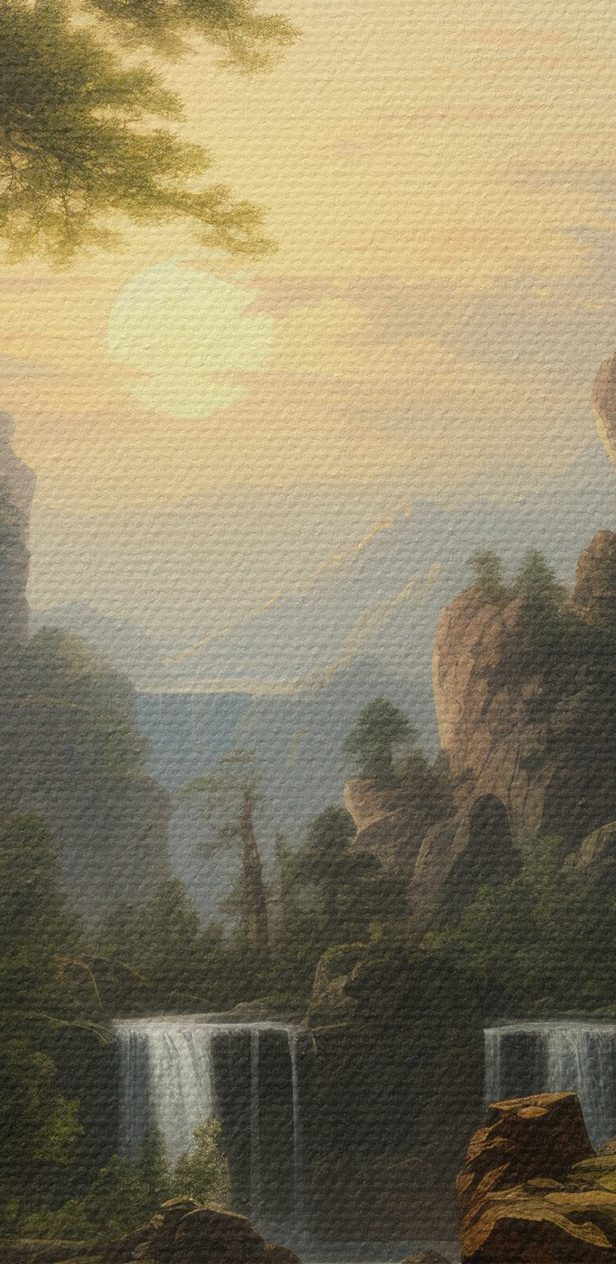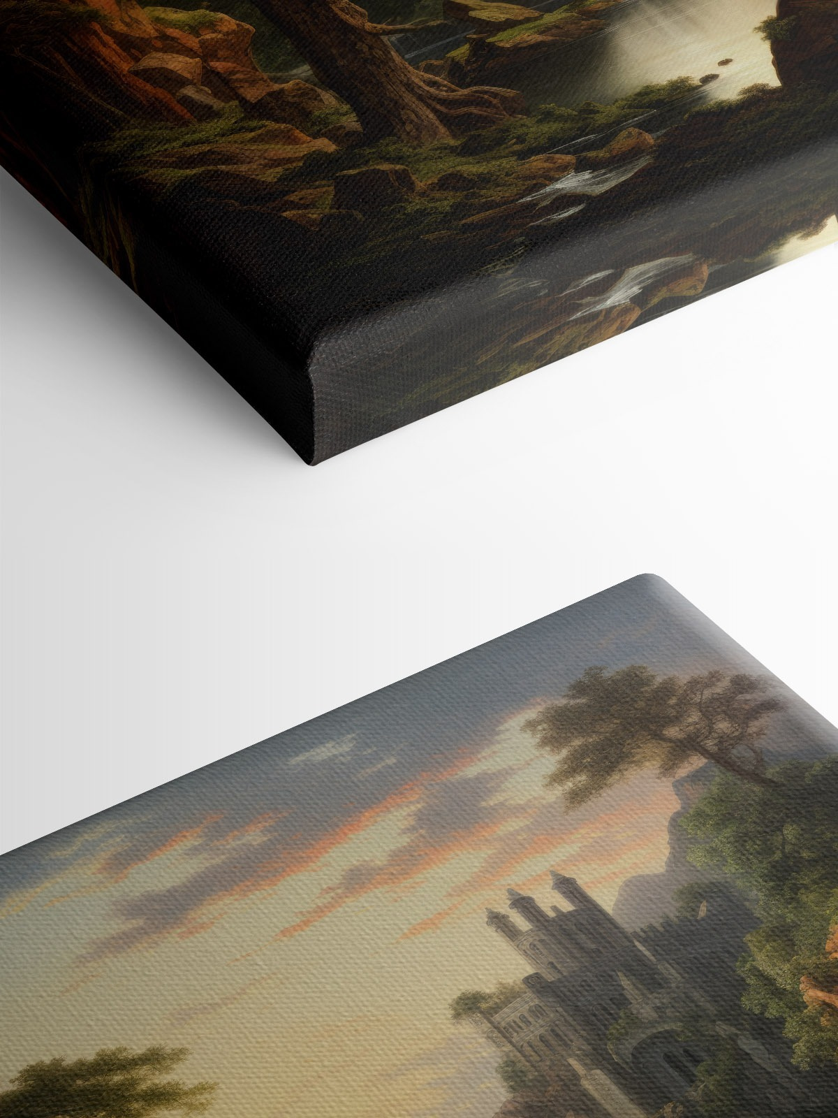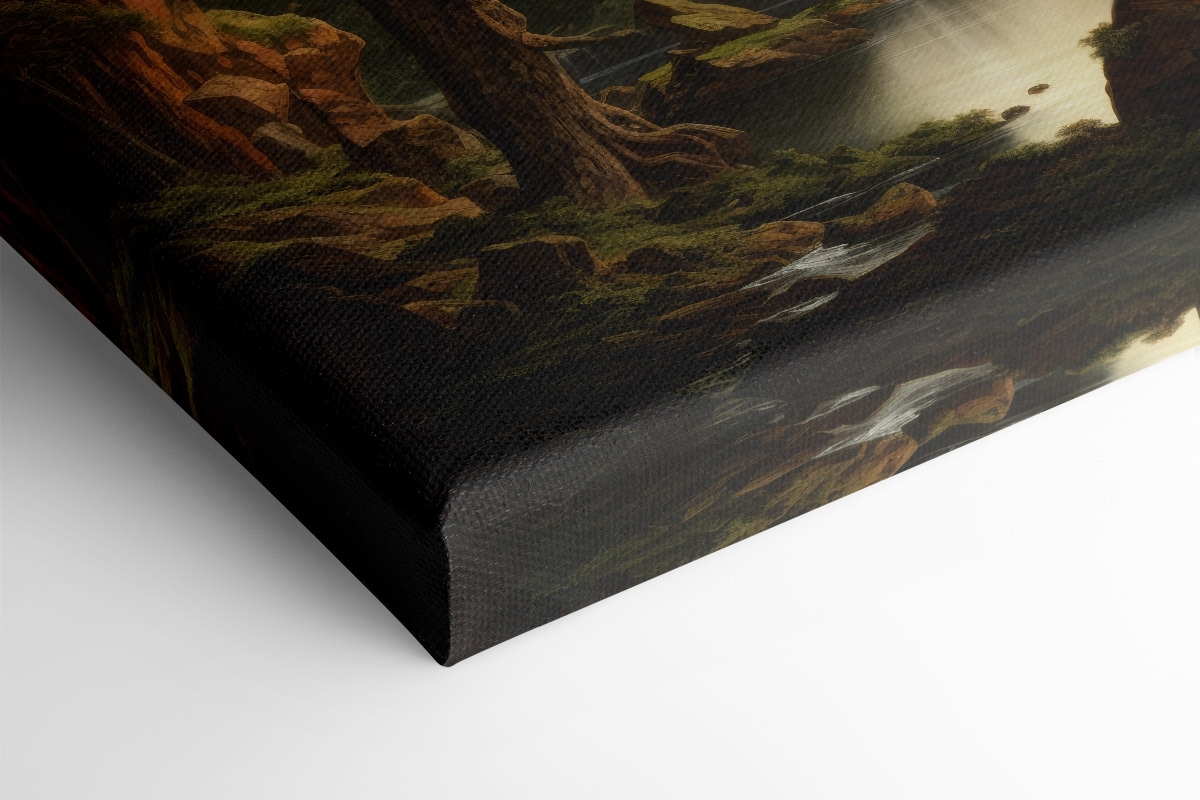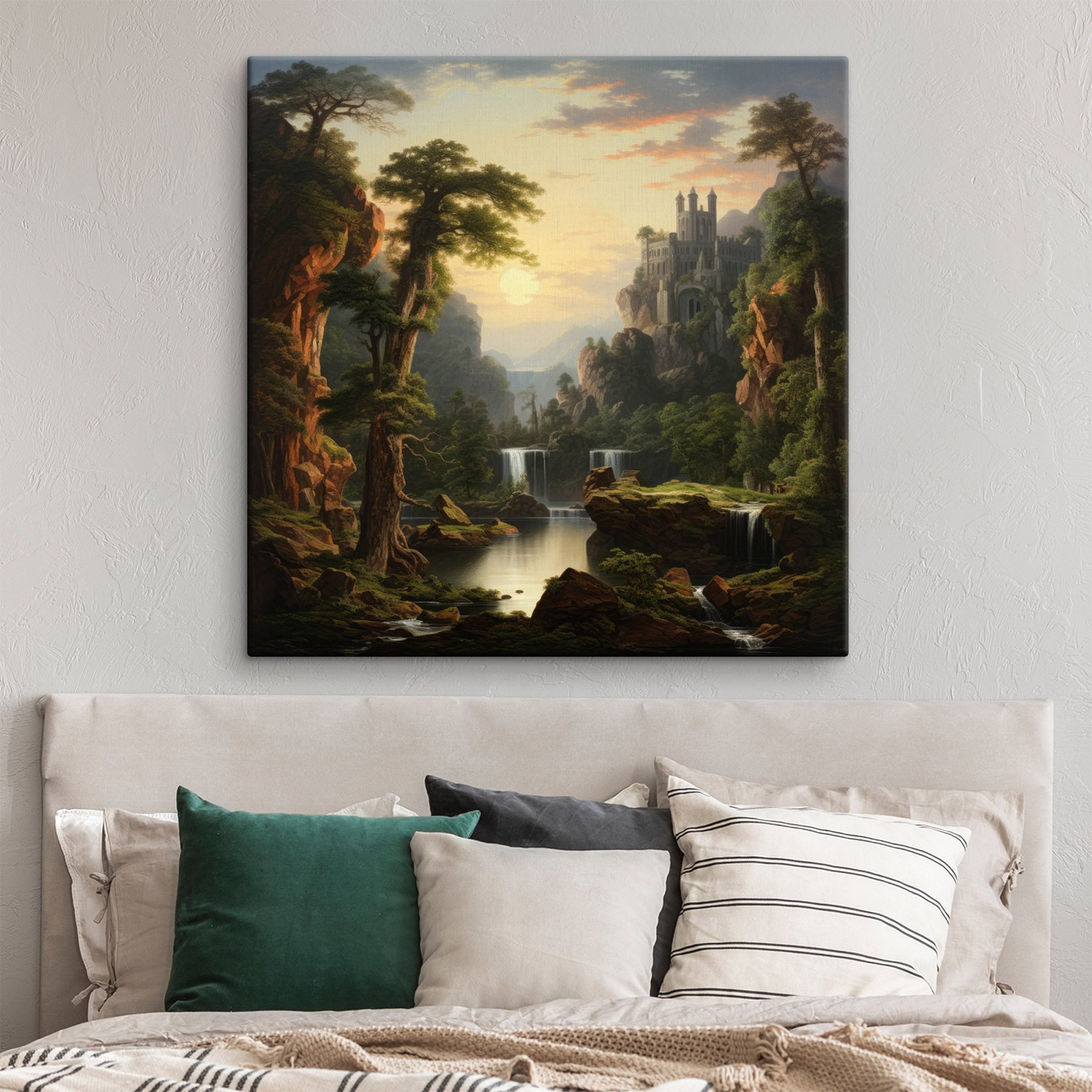 Transformeer je kamer met deze betoverende canvasprint met een serene waterval en een majestueus kasteel in de bergen. Het is net alsof je een stukje sprookjesachtige charme in je woonkamer brengt – zonder de draken natuurlijk! Stel je voor dat je tot rust komt in een knusse stoel, met een warm kopje thee in de hand, terwijl het zachte geluid van klaterend water de lucht vult. Het levendige groen en de warme tinten van de zonsondergang kunnen zelfs de grijsste dag een beetje vrolijker maken. Het is perfect voor wie droomt van weelderige bossen en ontsnappingen naar de bergen, om een vleugje natuurschoon in huis te halen. Wie wil er nu niet elke dag naar een stukje avontuur staren? Ontketen je innerlijke ontdekkingsreiziger terwijl je het comfort van thuis behoudt.