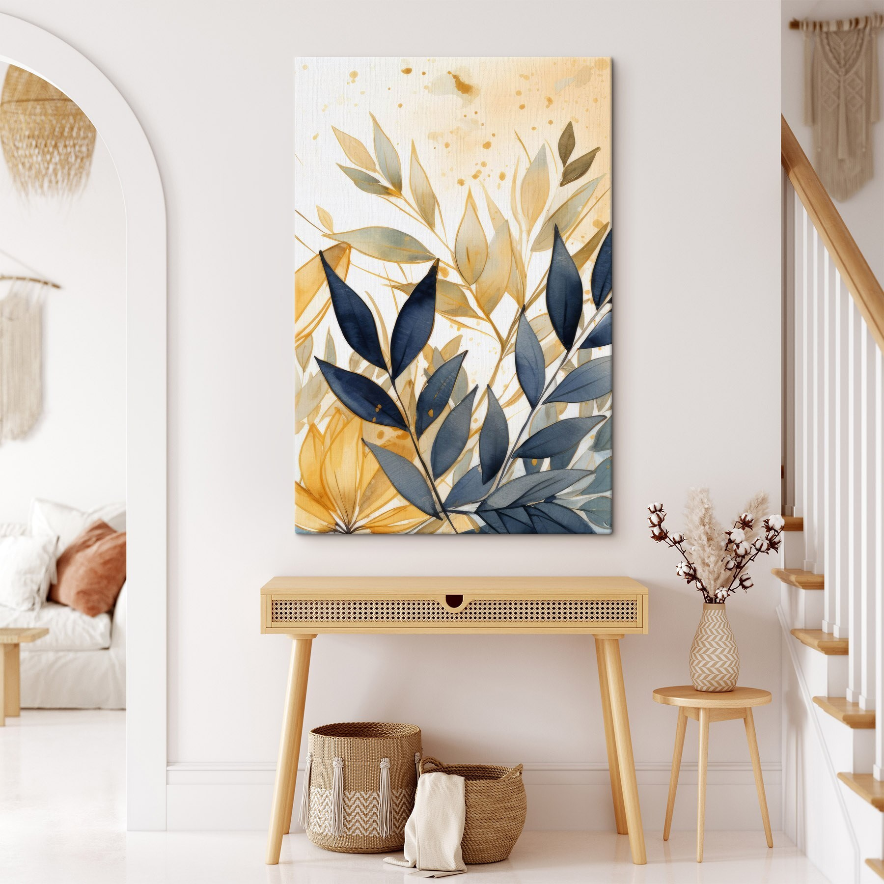 Transformeer elke kamer met een vleugje natuurlijke eigenzinnigheid met deze canvasprint, “Soft Hues Blend in Nature’s Art”. Stel je voor dat je wegzakt in een knusse stoel met een kopje thee, terwijl de zachte tinten van zacht groen en warm geel over de muur dansen. Het voelt als een kalme bries op een zonnige dag – een perfecte dosis rust voor een woonkamer, slaapkamer of zelfs een creatieve ruimte. De aquarelstijl voegt een uitnodigende zachtheid toe, perfect voor mensen die de schoonheid van de natuur binnenshuis waarderen. Het is alsof je een stukje van het buitenleven in huis haalt, zonder de muggen. Een gespreksstarter? Absoluut.