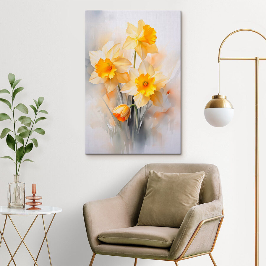 Fleur elke ruimte op met deze prachtige canvasprint met vrolijke gele en witte bloemen. Stel je voor dat je een kamer binnenloopt en je meteen opgebeurd voelt door hun zonnige charme. Het is alsof je het hele jaar door een stukje lente hebt, zelfs als het weer buiten niet meewerkt. Deze bloemen verwelken niet en hebben geen water nodig – alleen een beetje liefde voor de muur. Perfect voor een gezellig hoekje, boven de bank of op een plek die wel wat vrolijkheid kan gebruiken, dit kunstwerk voegt warmte en karakter toe. Wie zou daar niet om glimlachen?