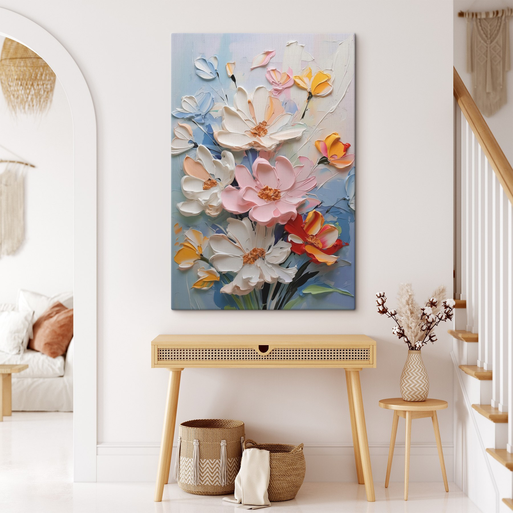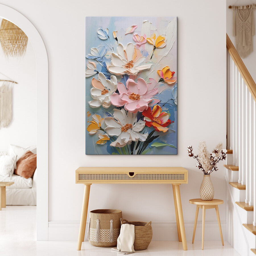 Verander elke muur in een frisse wind met deze prachtige canvasprint met een levendig boeket bloemen. Stel je voor dat je in een gezellig hoekje zit, omringd door deze levendige bloemen die over het canvas lijken te dansen en een vleugje charme van de natuur aan je ruimte toevoegen. Heldere kleuren knallen, waardoor de sfeer in elke kamer direct verbetert. Of het nu in de woonkamer, een slaapkamer of zelfs een hal is, het roept het hele jaar door dat lentegevoel op. Perfect om bij weg te dromen of in gedachten te verdwalen onder het genot van een kopje koffie – wie wil dat nou niet? Laat de glimlach maar komen!
