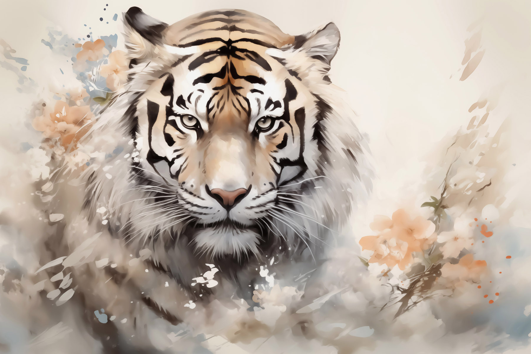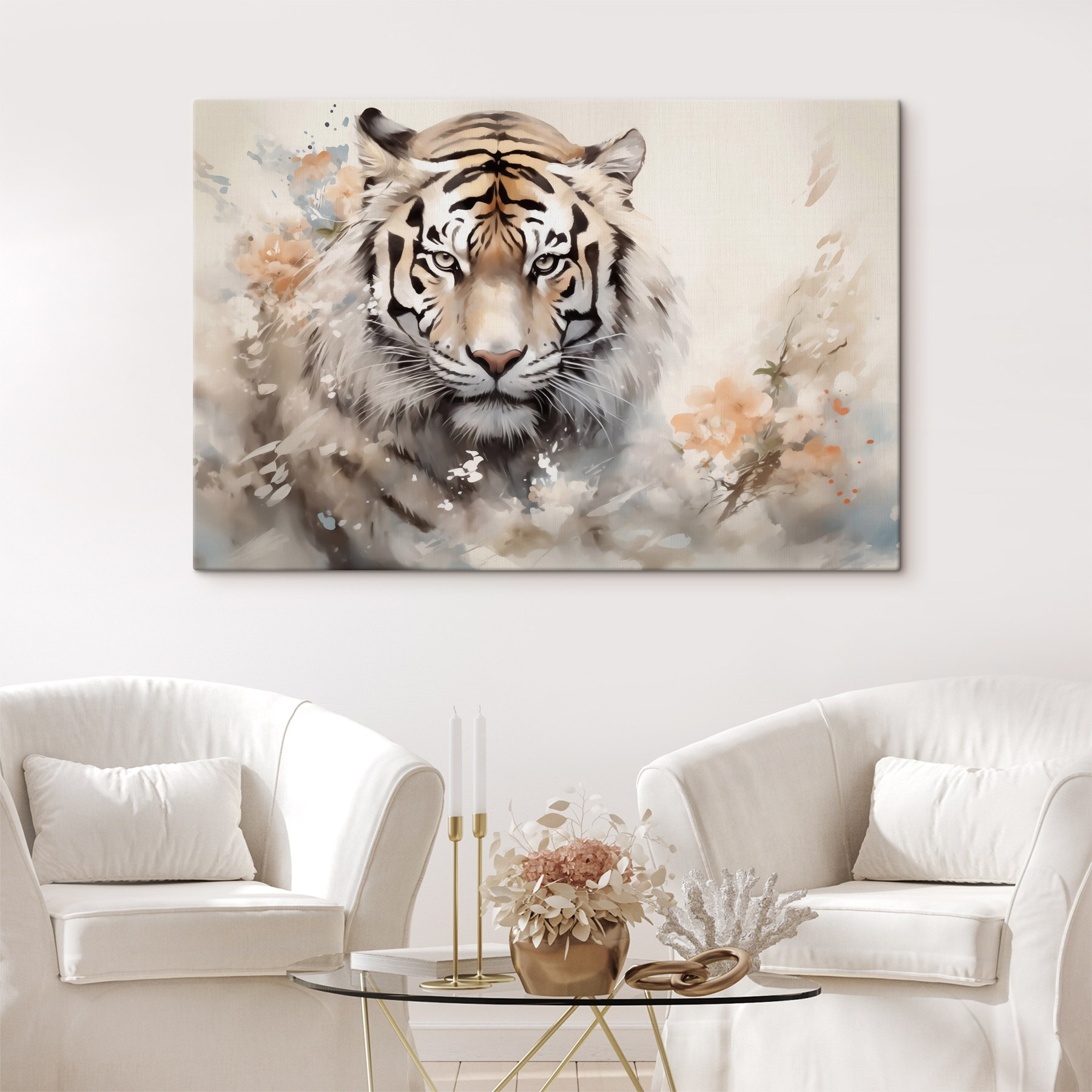 Transformeer je ruimte met deze opvallende canvasprint met een majestueuze tijger omringd door zachte bloemen. Het is niet zomaar kunst; het is alsof je een conversatie starter hebt die buldert van persoonlijkheid! Zie het al hangen in je woonkamer of thuiskantoor – iedereen zal worden aangetrokken en wie weet, misschien inspireert het wel tot een leuk gesprek over wilde dieren of reizen. De subtiele kleuren passen bij elk interieur en de blik van de tijger voelt bijna levendig aan, waardoor een vleugje wild binnenshuis komt. Het is een unieke mix van fel en zacht, perfect voor mensen die de schoonheid van zowel natuur als kunst waarderen. Echt, je zou wel eens kunnen dagdromen over safari’s of jungle-avonturen terwijl je ernaar staart. Hoe cool is dat?
