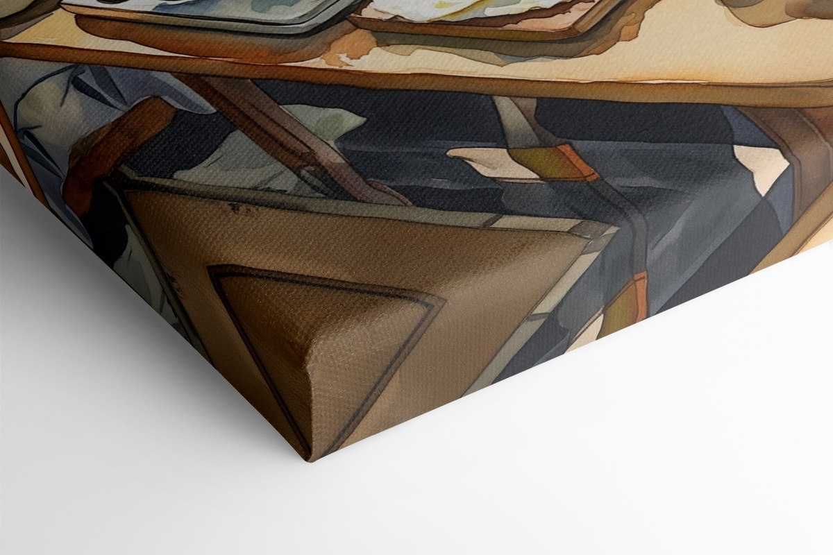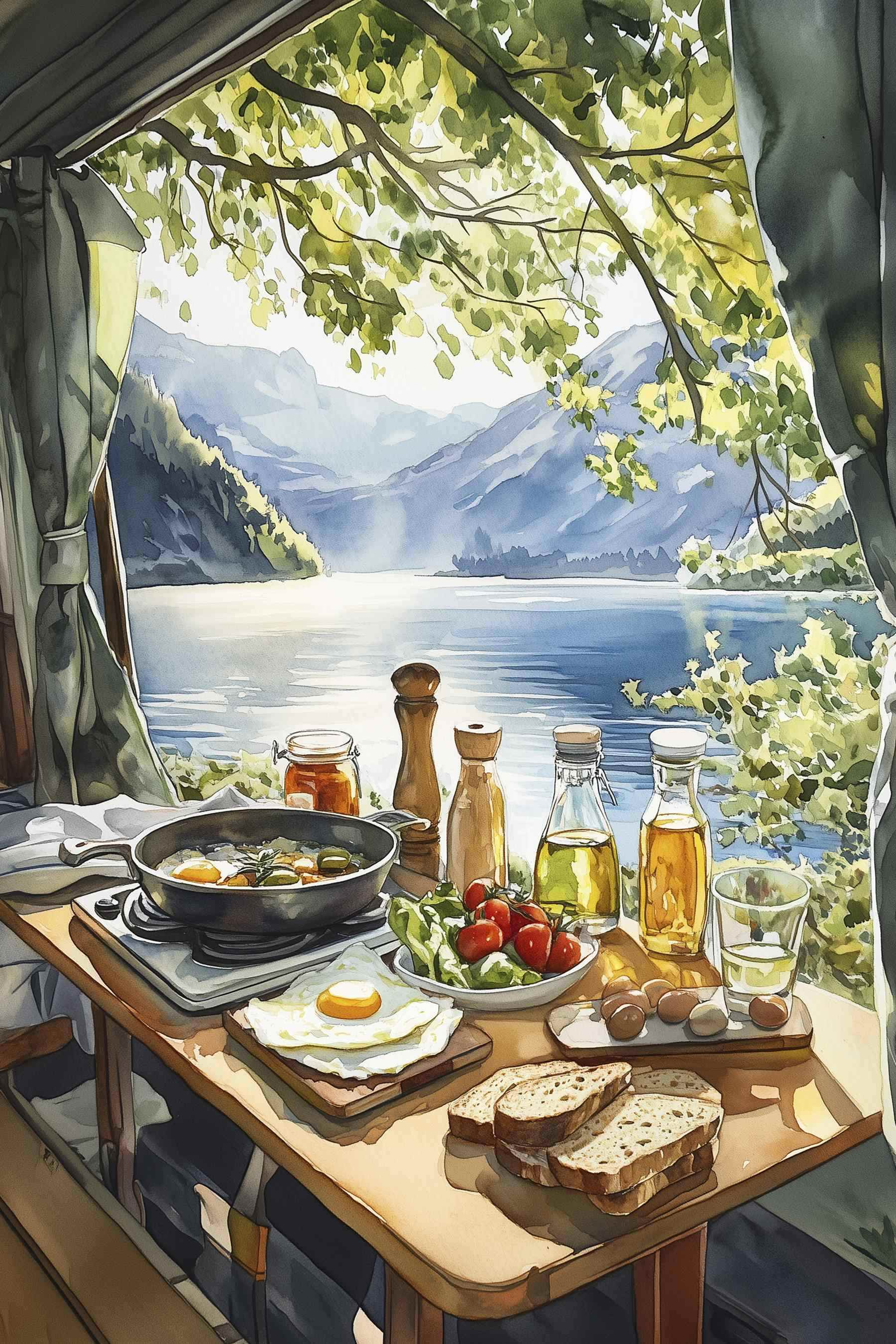 Stel je dit eens voor: een zonnige ochtend bij het meer, de geur van verse eieren in een pan en het zachte geritsel van de bladeren boven je hoofd. Deze canvasprint vangt die sfeer perfect en brengt het buitenleven naar binnen met zijn levendige kleuren en ongedwongen charme. Het is als een klein venster naar een sereen toevluchtsoord – een herinnering om het rustiger aan te doen en te genieten van de eenvoudige geneugten van het leven. Zie het al voor je aan de muur, dagdromen over picknicks en luie middagen. Het is niet alleen decor; het is een stukje rust dat elke ruimte een warm en uitnodigend gevoel geeft. Of het nu je reislust aanwakkert of je gewoon doet glimlachen, dit stuk zal zeker een gespreksonderwerp zijn. Wie wil er immers geen dagelijkse herinnering aan een brunch aan het meer?