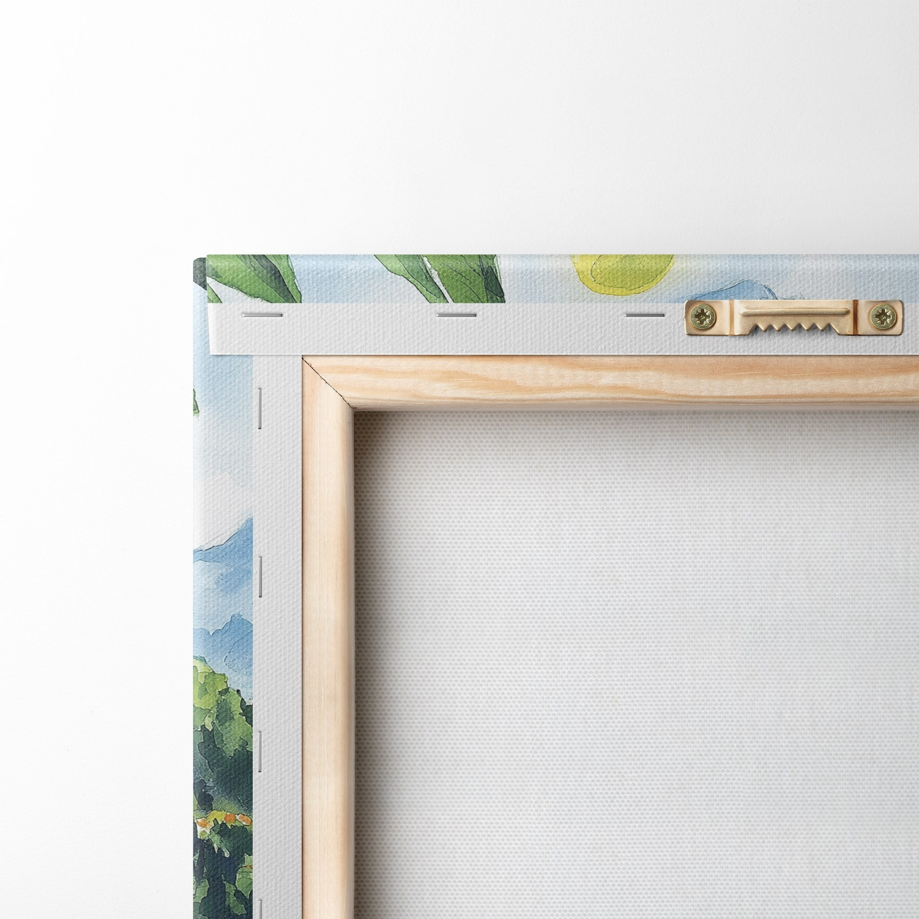 Transformeer elke ruimte met deze prachtige canvasprint, “Aquarel schilderij van een tafel met drankjes en uitzicht op een meer”. Stel je voor dat je aan een cocktail nipt terwijl je naar een prachtig uitzicht op het meer staart – het is net een mini-vakantie bij je thuis! De levendige kleuren springen eruit, waardoor het een prachtig middelpunt is. Dit kunstwerk vangt die idyllische, zonovergoten dag waar zorgen wegzweven, net als die pluizige wolken in de lucht. Het brengt een vleugje mediterrane magie, ideaal om een gezellig hoekje op te fleuren of boven een eethoek te hangen. Wie wil er nu niet een stukje van die serene sfeer? Perfecte mix van natuur en stadsgezichten voor de decorliefhebber!