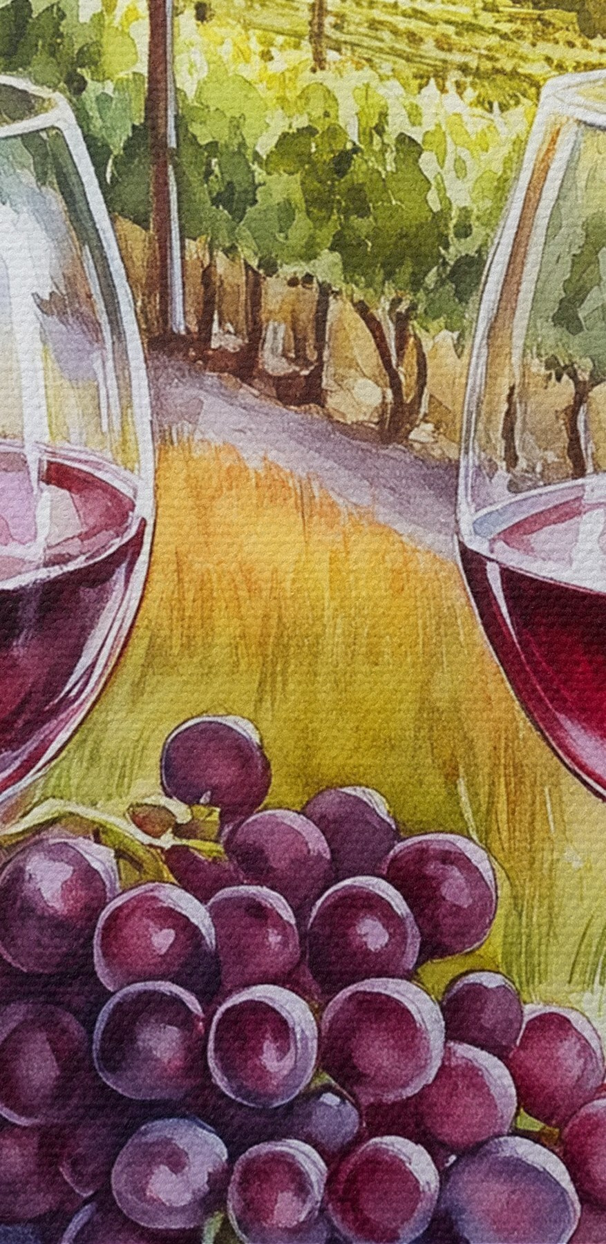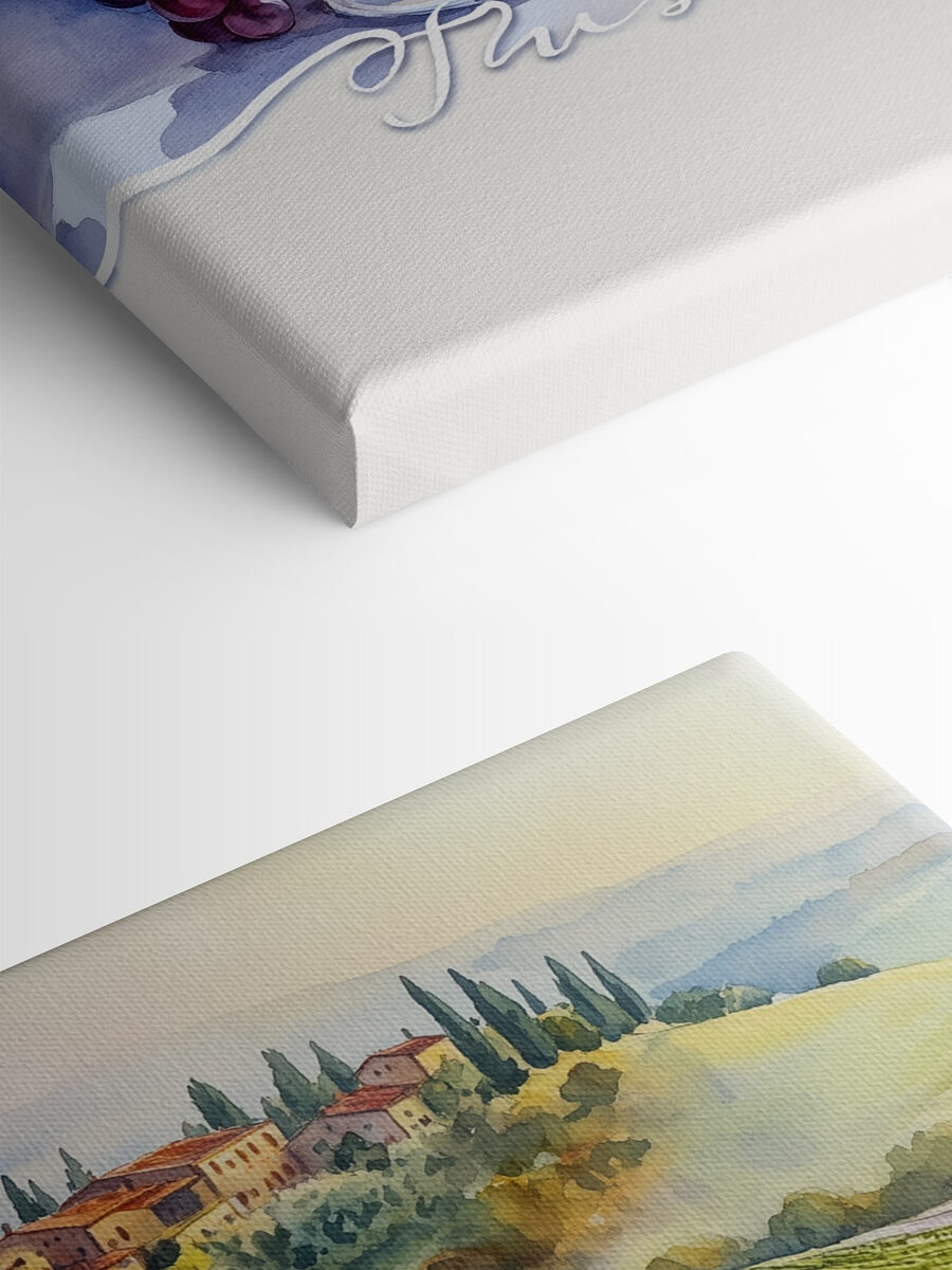 Stel je voor dat je je keuken binnenstapt en daar staan twee elegante wijnglazen naar je te staren, tot de rand gevuld met rijke, rode lekkernijen. Deze canvasprint “Wijnglazen en druiven op een tafel” brengt je rechtstreeks naar de zonovergoten heuvels van Toscane. Het is niet zomaar een schilderij; het is een stukje van dat dromerige, relaxte leven, waar elke slok voelt als een feest. Stel je voor dat je een etentje geeft, vrienden bij elkaar, gelach in de rondte en deze schoonheid die trots op de achtergrond hangt. Het zet de sfeer, nietwaar? Perfect voor iedereen die een beetje van die Italiaanse charme aan de muur wil hangen. Proost!