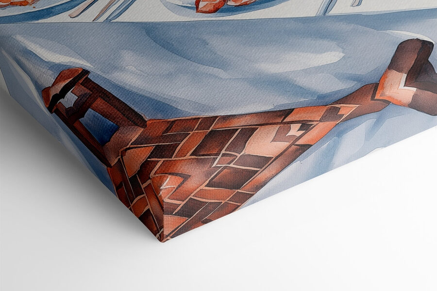 Stel je dit prachtige aquarelschilderij voor met het perfecte brunchmoment tegen een adembenemende achtergrond van sprankelend water en zachte golven. Het is net een minivakantie aan je muur. De levendige kleuren en uitnodigende gerechten zullen je gasten doen dromen van ontspannen bijeenkomsten, vol gelach en smakelijke hapjes. Zie jezelf al koffie drinken terwijl je geniet van dat vredige uitzicht. Dit canvas kunstwerk geeft een vrolijk tintje aan keukens of eetkamers en creëert een warme sfeer die gewoon als thuis aanvoelt. Laat de goede vibes stromen en je muren tot leven komen met stijl!