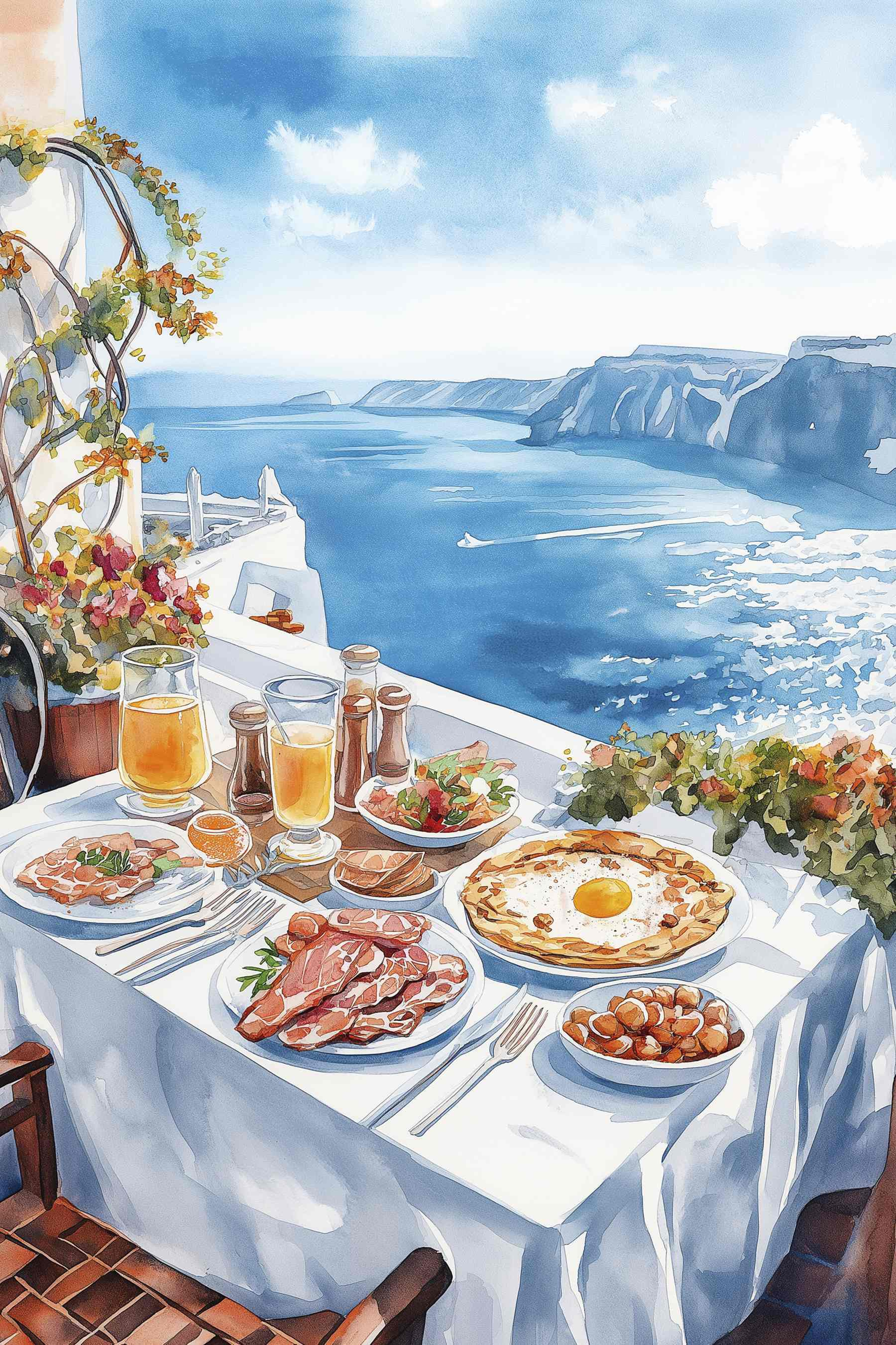 Stel je dit prachtige aquarelschilderij voor met het perfecte brunchmoment tegen een adembenemende achtergrond van sprankelend water en zachte golven. Het is net een minivakantie aan je muur. De levendige kleuren en uitnodigende gerechten zullen je gasten doen dromen van ontspannen bijeenkomsten, vol gelach en smakelijke hapjes. Zie jezelf al koffie drinken terwijl je geniet van dat vredige uitzicht. Dit canvas kunstwerk geeft een vrolijk tintje aan keukens of eetkamers en creëert een warme sfeer die gewoon als thuis aanvoelt. Laat de goede vibes stromen en je muren tot leven komen met stijl!