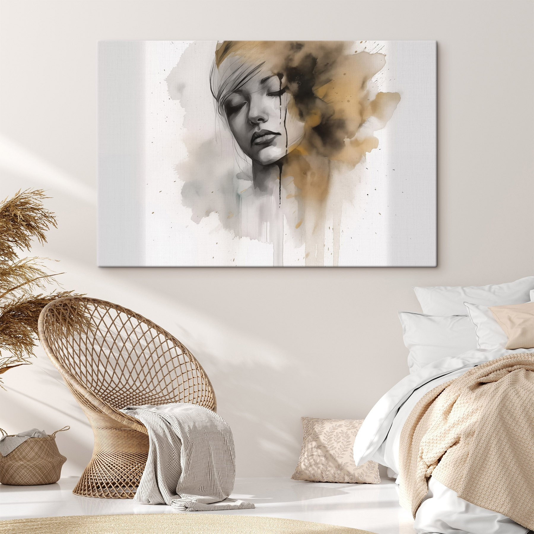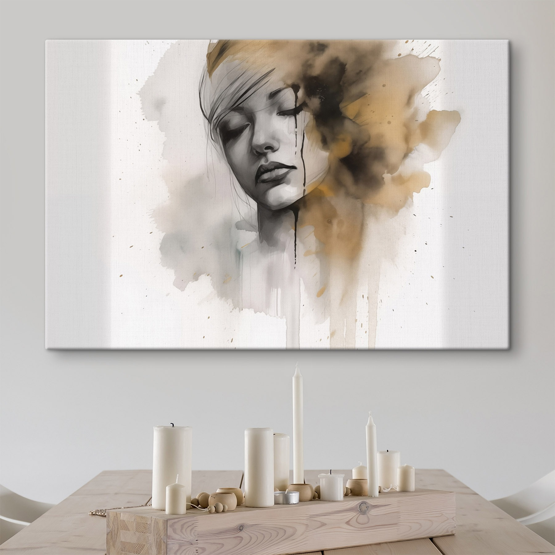 Stap in een wereld van rust met “Etherische expressie in gedempte tinten”. Deze canvasprint legt een fascinerend moment vast, waar emotie en kunstzinnigheid elkaar ontmoeten in prachtige zachte tinten. Stel je voor dat je het in je woonkamer ophangt: vrienden lopen binnen en hun ogen vinden meteen dit werk, waardoor een rustig gesprek op gang komt. De zachte kleuren passen naadloos bij verschillende inrichtingsstijlen, waardoor het een gezellig middelpunt wordt. Het is alsof je een klein stukje sereniteit aan je muur hebt hangen, dat je eraan herinnert dat kunst niet alleen iets is om naar te kijken, maar ook iets om te voelen. Perfect voor rustige ochtenden met een kop koffie of een late avond met een glas bubbels. Voeg een vleugje intrige toe aan je ruimte dat verhalen fluistert zonder een woord te zeggen!