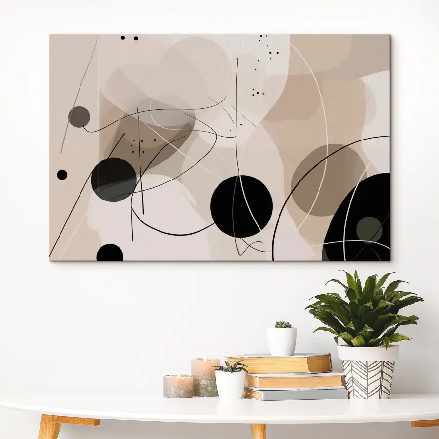 Verander een muur in een conversatiestarter met deze betoverende canvasprint van zwarte en witte cirkels en lijnen. Stel je voor dat het boven je bank hangt en moeiteloos de kamer samenbrengt. De mix van vormen creëert een harmonieuze dans die uitnodigt tot nieuwsgierigheid – perfect voor die luie middagen waarop je gewoon wilt staren en je gedachten wilt laten afdwalen. Hij past prachtig in elke ruimte en voegt een vleugje moderne elegantie toe. Bovendien is het een geweldige manier om je artistieke kant te laten zien zonder de rommel van verf! Wie wist dat abstracte kunst zoveel vreugde kon opwekken?