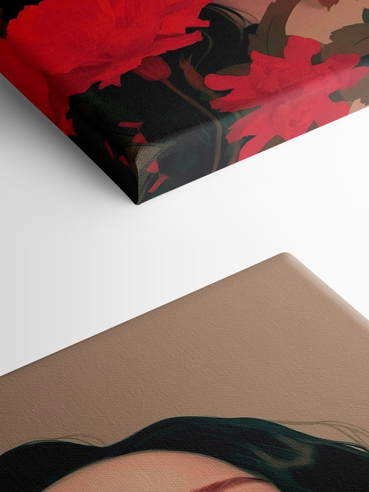 Stel je voor dat je een kamer binnenloopt en begroet wordt door een prachtige canvasprint met een vrouw met lang, wapperend zwart haar, volledig omhuld door levendige rode bloemen. Het is alsof je een droom binnenstapt, waar de kleuren bruisen van leven en elk bloemblaadje een geheim lijkt te fluisteren. Dit werk harmonieert de schoonheid van de natuur en de diepte van emotie, waardoor het perfect is voor een gezellige woonkamer of een serene slaapkamer. Eén blik erop en de zorgen van de dag smelten weg en alleen rust en inspiratie blijven over. Het is niet zomaar kunst; het is een gevoel, zoals een warme knuffel op een kille dag. Voeg een vleugje gedurfde charme toe aan uw ruimte en laat uw muren het woord doen!