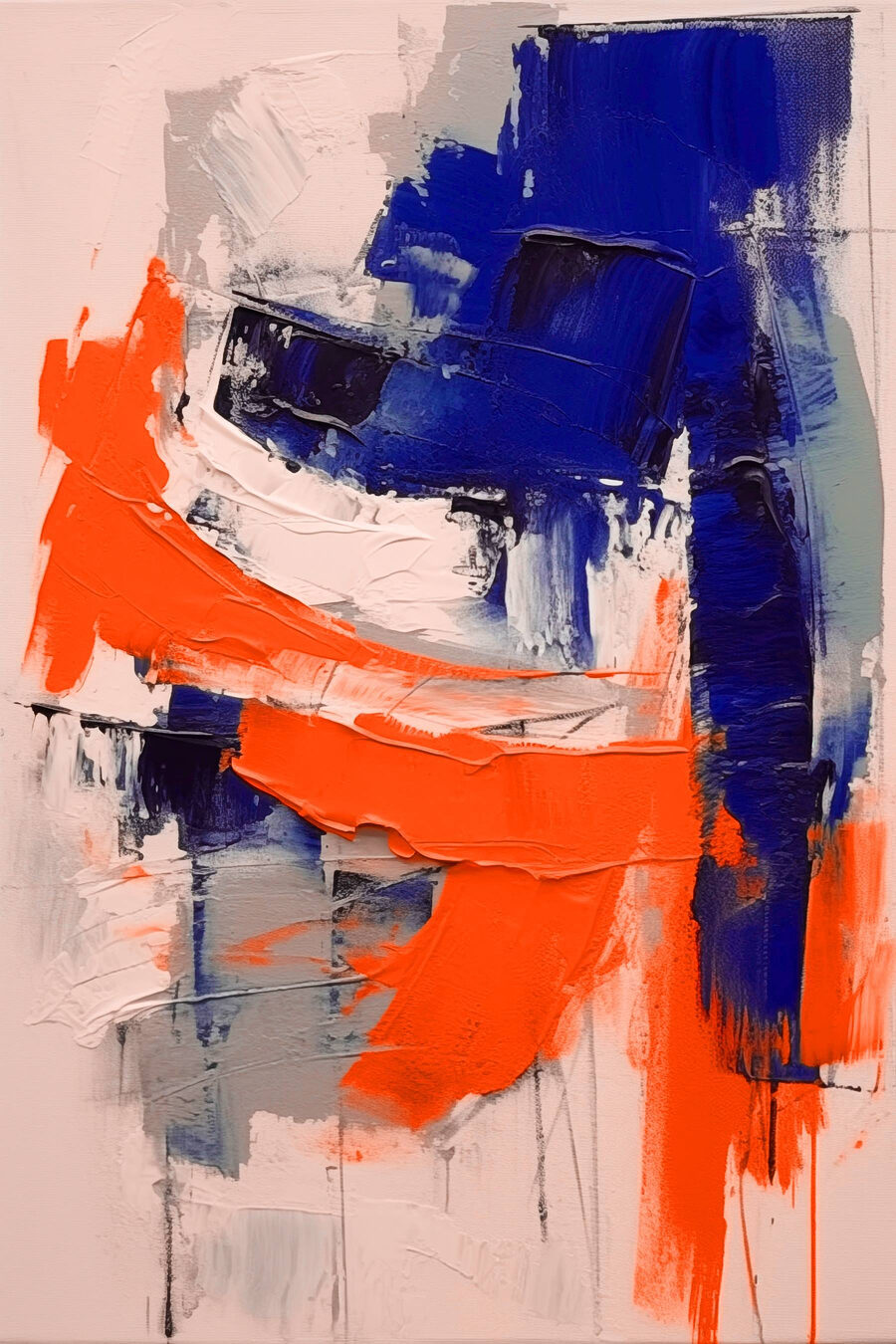 Duik in een vleugje creativiteit met deze opvallende canvasprint! Het felle blauw en het levendige oranje dansen samen, als een levendig gesprek tussen vrienden. Het is alsof de tinten speels ruziën over wie de schijnwerpers krijgt, terwijl de zachtere grijzen en witten voor een heerlijke harmonie op de achtergrond zorgen. Hang het in je woonkamer of kantoor en je kunt het kunstwerk bijna horen fluisteren: “Hé, laten we die ruimte opvrolijken!”. Het is het perfecte stuk om vrolijkheid op te wekken, creativiteit te inspireren of gewoon die muur een beetje pit te geven. Perfect voor iedereen die een vleugje plezier en persoonlijkheid aan zijn inrichting wil toevoegen!