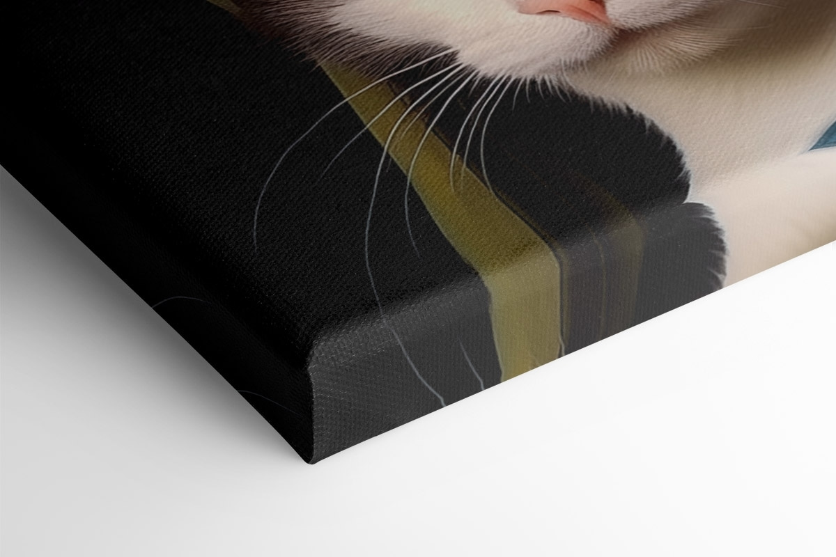 Deze canvasprint van een kat met een chique groene hoed is een absolute conversatiestarter! Stel je voor dat je een kamer binnenloopt en begroet wordt door die betoverende gele ogen, bijna alsof ze je uitnodigen in een kleine geheime wereld van koninklijke katachtigen. Met zijn levendige kleuren en charmante draai aan een klassieke kunststijl voegt het een vleugje eigenzinnigheid toe aan elke ruimte. Perfect voor kattenliefhebbers of iedereen die van kunst met een twist houdt, deze print zal zeker een glimlach op je gezicht toveren. Het kan gemakkelijk aanzetten tot lachen bij de koffie of een geliefd decorstuk worden dat de saaiste dagen opvrolijkt.