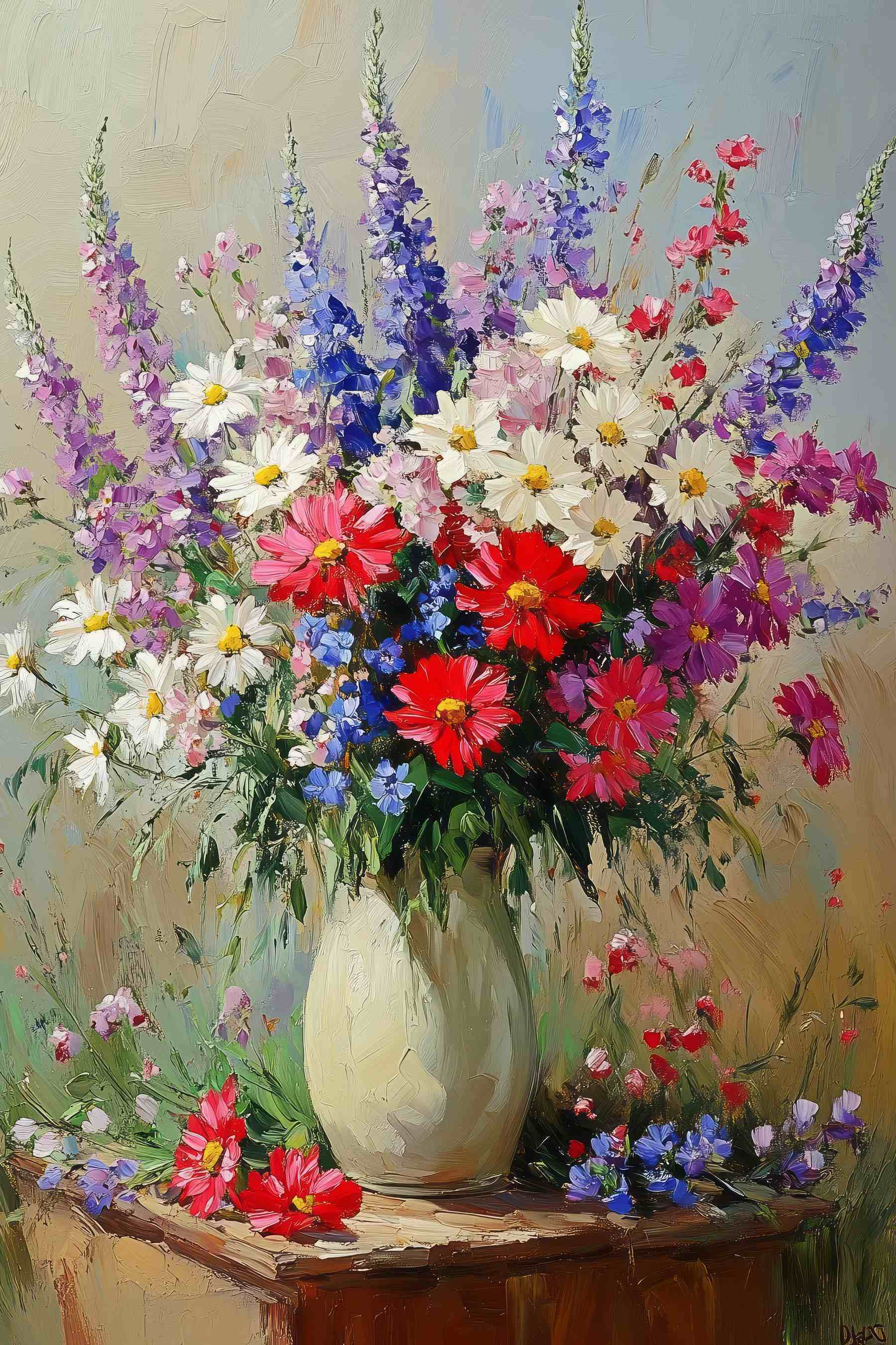 Fleur elke kamer op met deze prachtige canvasprint van een vaas vol kleurrijke bloemen. Het is alsof je een tuin binnenshuis hebt, zonder de vervelende pollen! Die levendige rode, blauwe en paarse kleuren dansen over het canvas en brengen warmte en vreugde. Stel je dit werk voor in een zonnig hoekje – misschien wel bij een raam – waar het zonlicht die felle kleuren in de kijker zet. Het is perfect voor gezellige praatjes of een rustige middag met een kopje thee. Geloof me, bezoekers zullen blijven staan en glimlachen en misschien zelfs verhalen vertellen over hun favoriete bloemen. Het is een eenvoudig detail dat veel charme toevoegt!