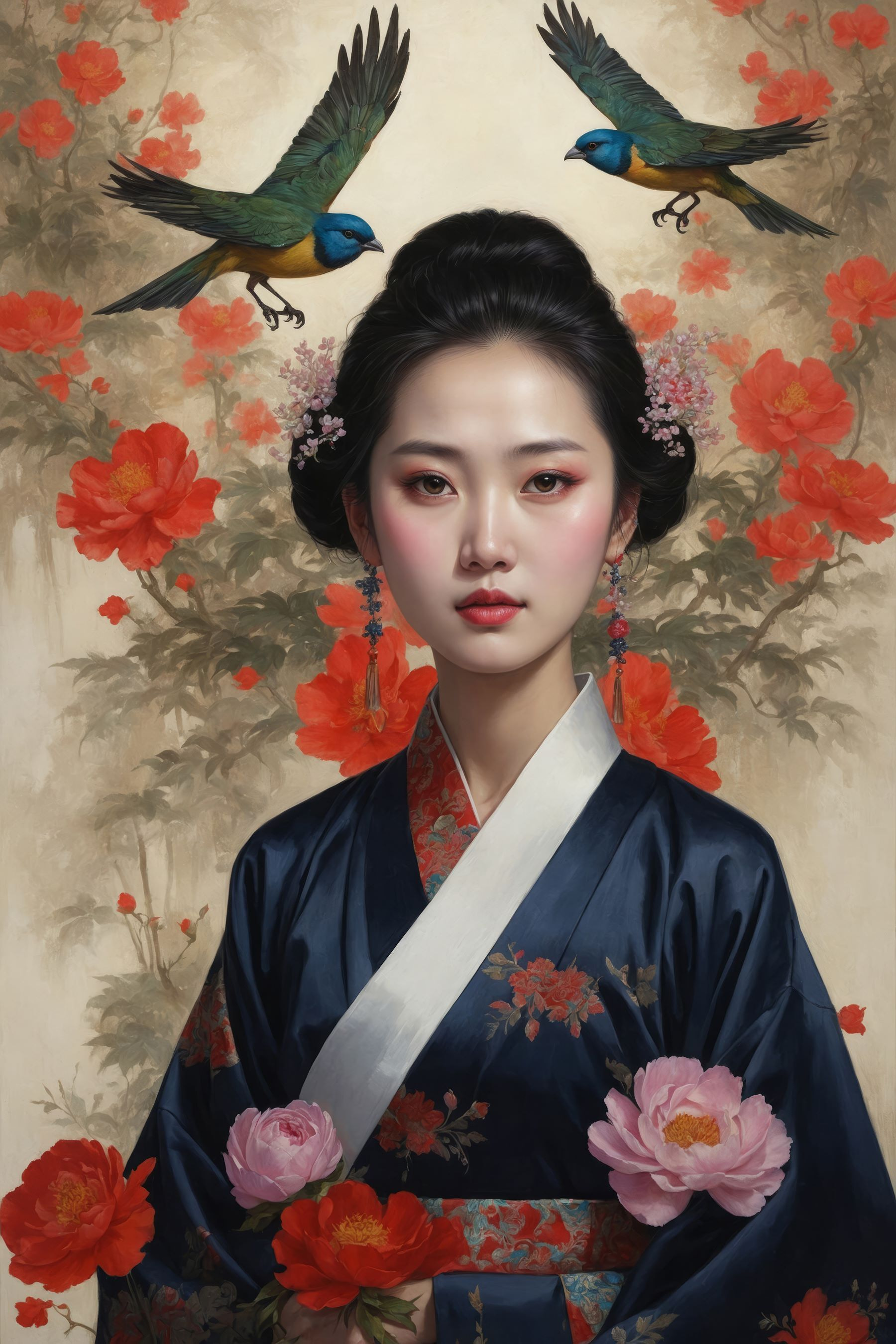 Transformeer je kamer met deze prachtige canvasprint van een vrouw in een kimono, omringd door levendige bloemen en sierlijke vogels. De kleuren springen bijna van het doek af en brengen leven en elegantie in elke kamer. Stel je dit stuk voor als een conversatie starter tijdens bijeenkomsten of als een rustige achtergrond tijdens die rustige momenten met een kopje thee. Het is alsof je een minivakantie hebt in een rustige tuin, gewoon thuis! Perfect voor iedereen die houdt van een vleugje natuurschoon gemengd met een vleugje culturele charme. Geloof ons, je muren zullen je dankbaar zijn!