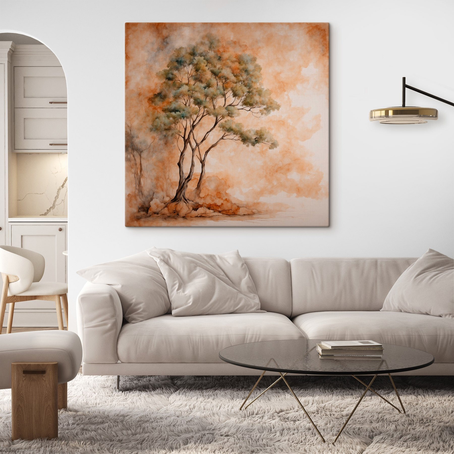 Transformeer je kamer met deze prachtige canvasprint van een prachtige boom die helemaal in het teken staat van de natuur. Het is alsof je een stukje bos naar je woonkamer brengt, zonder de eekhoorns natuurlijk! De zachte kleuren en zachte lijnen creëren een rustgevend gevoel, perfect om tot rust te komen na een lange dag of gewoon te genieten van een kopje koffie terwijl je droomt over je volgende wandeling.