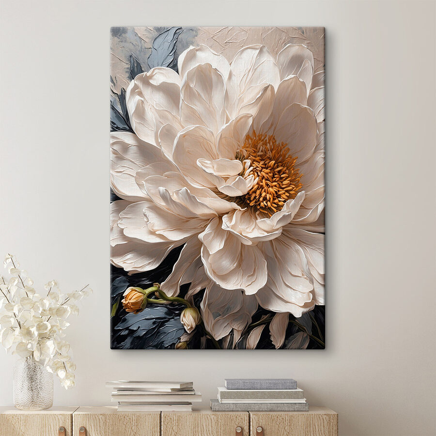 Haal een vleugje natuur in huis met deze prachtige canvasprint, “Beautiful Bloom in Soft Tones”. Stel je een enkele, oversized bloem voor die zich koestert in het zonlicht – haar zachte, crèmekleurige bloemblaadjes nodigen je uit om ze aan te raken, bijna als een zachte knuffel voor je muren. Dit kunstwerk is perfect voor een gezellige woonkamer of een serene slaapkamer en straalt elegantie en warmte uit. Het is net een stukje tuin zonder gieter. Bovendien zal het je doen glimlachen telkens als je er voorbij loopt. Wie wil er nu niet begroet worden door zo’n schoonheid? Het is een instant sfeermaker!