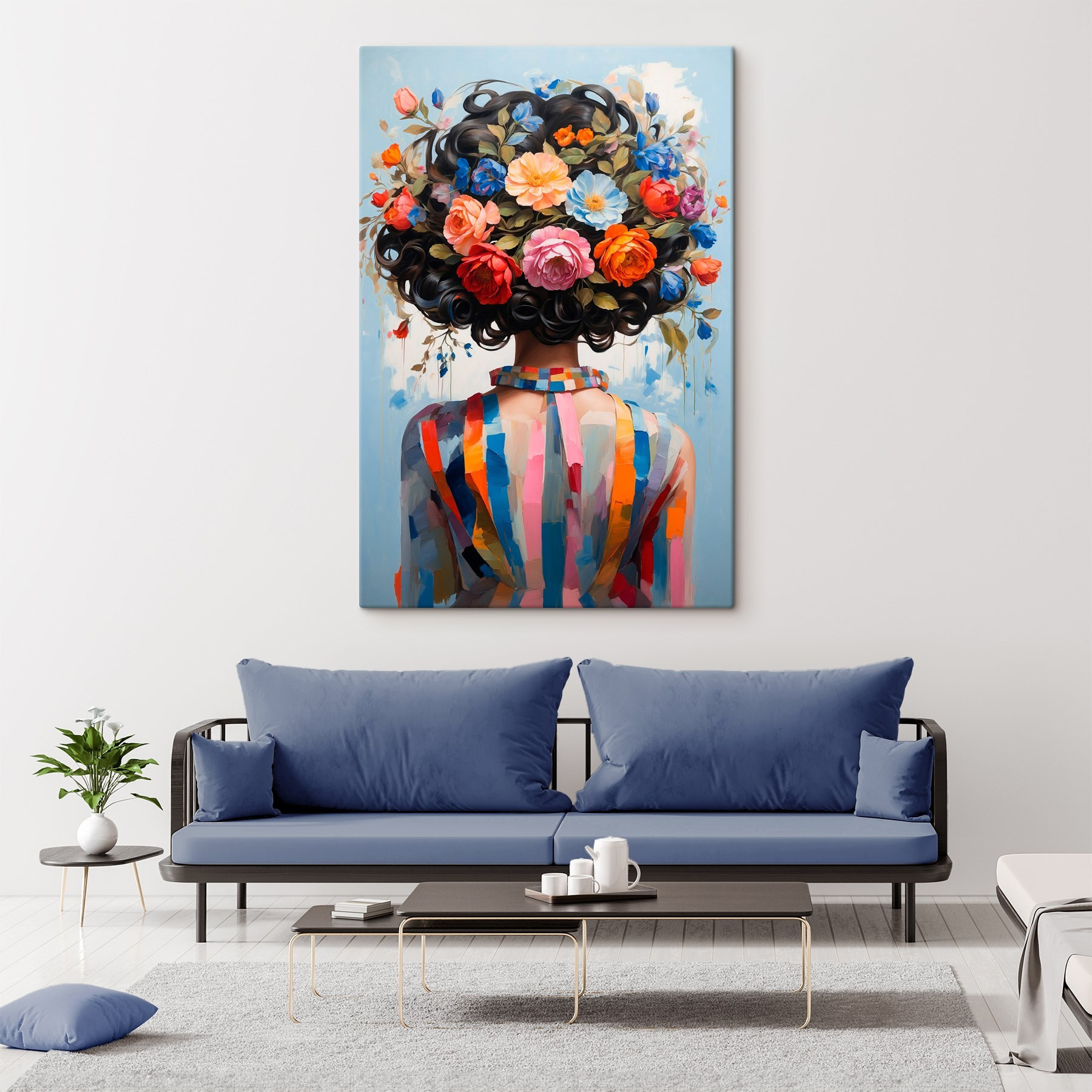 Fleur elke ruimte op met deze prachtige canvasprint van een vrouw met een boeket levendige bloemen. Het is alsof je het hele jaar door de lente in huis haalt. Stel je voor dat deze schoonheid aan je muur hangt – mensen zullen stoppen en het bewonderen en misschien zelfs vragen naar je geheim om zulke unieke decoratie te vinden. De kleuren zijn levendig, bijna dansend, en de bloemenkroon? Het is perfect om te dagdromen over zomerse picknicks. Elke blik is een vriendelijke herinnering om even aan de rozen te ruiken (figuurlijk, natuurlijk) en een beetje vreugde toe te voegen aan het dagelijks leven. Of het nu een woonkamer of een gezellig hoekje is, deze print weeft warmte en charme in elke hoek. Je muren verdienen een beetje flair, vind je niet?