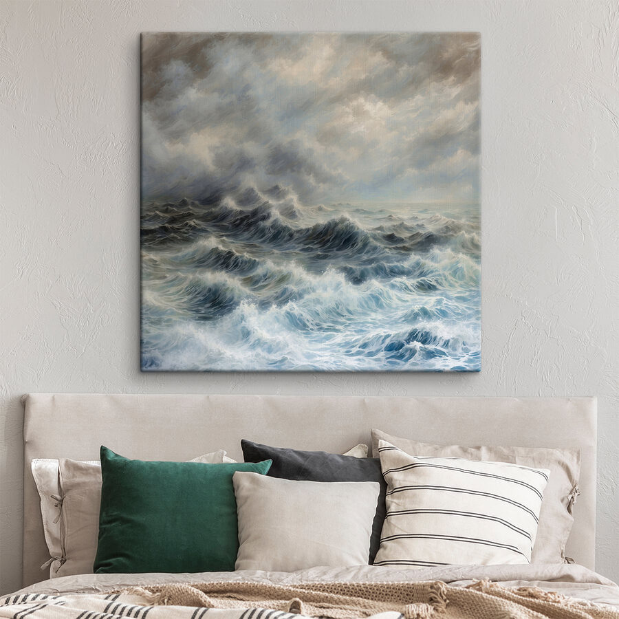 Breng de rustgevende sfeer van de oceaan naar je woonkamer met deze prachtige canvasprint met majestueuze golven die dansen onder een deken van wolken. Stel je voor dat je in je favoriete stoel wegzakt, met een warm drankje in de hand, terwijl je verdwaalt in deze waterige ontsnapping. De zachte blauwtinten en subtiele grijstinten roepen een vredig toevluchtsoord op, waardoor je bijna die zachte zeebries voelt. Perfect om een rustige sfeer te creëren, het is net een mini-vakantie elke keer als je er langs loopt. Hang hem op en laat de golven je zorgen wegdragen – want wie wil er nu geen stukje zee in huis?
