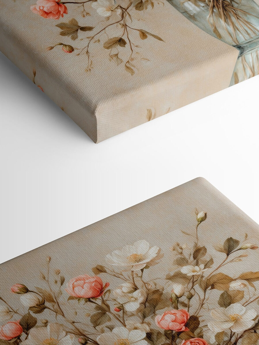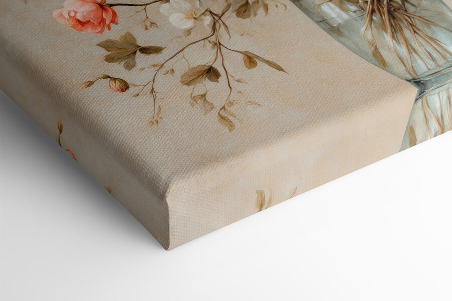 Fleur je kamer op met deze prachtige canvasprint van bloemen in een vaas. Stel je voor dat je een kamer binnenloopt en begroet wordt door deze heerlijke uitbarsting van bloemen – perfect voor de dagen dat je wel wat extra vrolijkheid kunt gebruiken. De zachte roze- en crèmetinten dansen samen en brengen een vleugje natuurschoon binnenshuis, zonder de pollen (gelukkig maar).