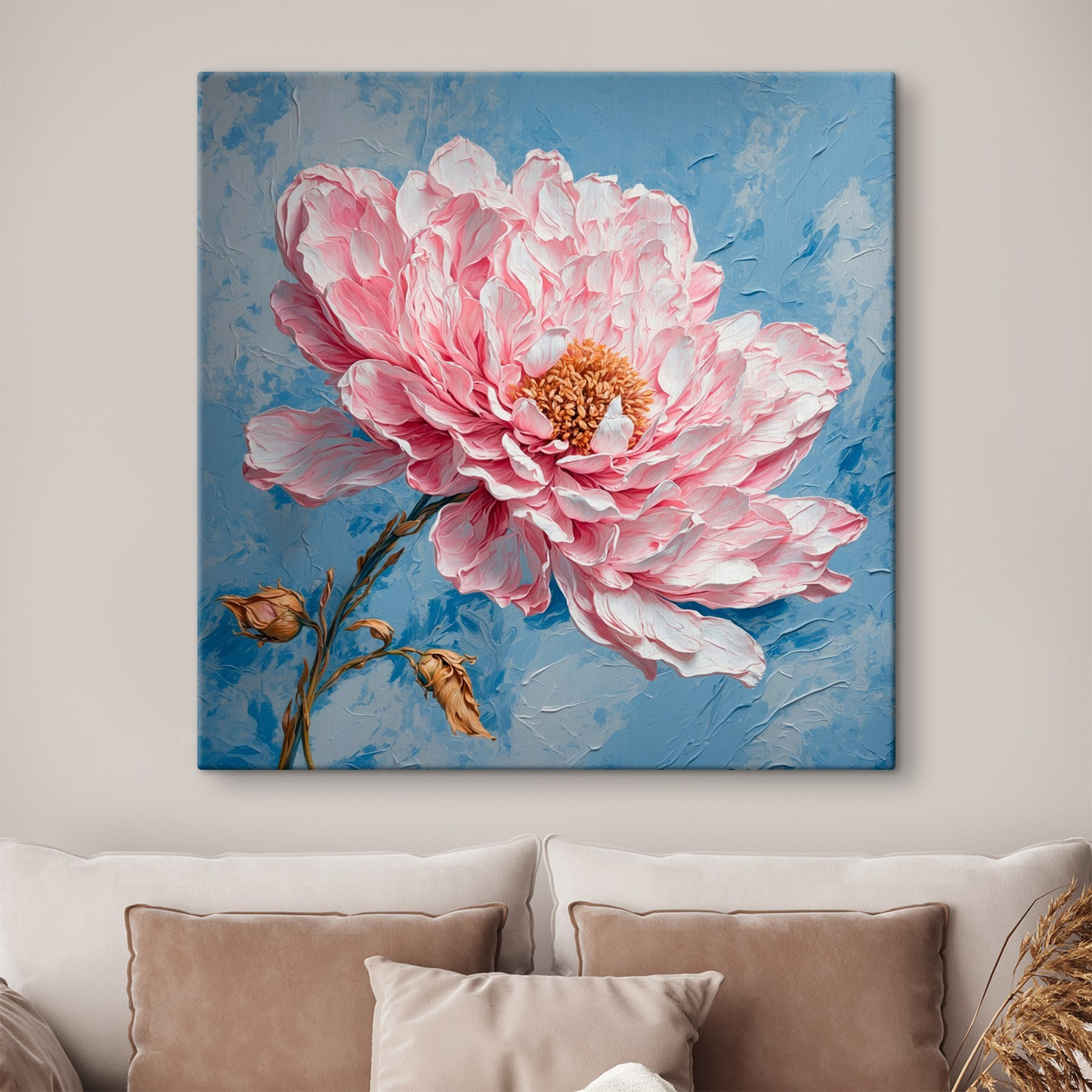 Fleur elke ruimte op met deze prachtige canvasprint van een roze bloem die bijna barst van het leven. Stel je voor dat hij in een gezellig hoekje of boven een zonnige bank hangt en de kamer vult met een warme, uitnodigende sfeer. De delicate bloemblaadjes en rijke texturen nodigen je uit om ze aan te raken (maak je geen zorgen, ze bijt niet!). Dit stuk voegt niet alleen een vleugje kleur toe, maar het fluistert ook verhalen van tuinwandelingen en zonnige dagen. Perfect voor iedereen die van de natuur houdt of een opkikkertje nodig heeft – het is net alsof je een beetje van het buitenleven naar binnen brengt zonder de vervelende bijen!