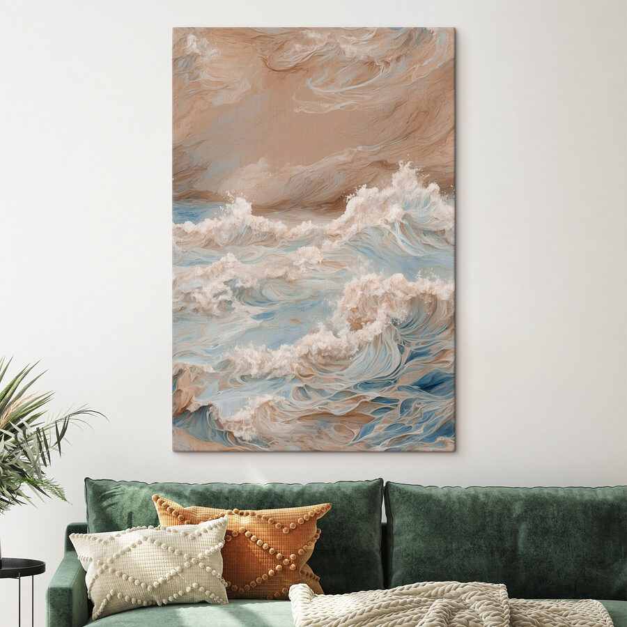 Duik in een moment waar de natuur centraal staat met deze prachtige canvasprint. “Waves Crashing in a Storm” vangt de wilde dans van het water terwijl het rolt en neerstort, elke golf een eigen verhaal. Stel je voor dat dit aan je muur hangt en het geluid oproept van de branding die tegen de kust beukt – alsof je een stukje oceaan thuis hebt. Vrienden zullen binnenlopen en die roes voelen, misschien denken ze zelfs dat ze de zilte zeelucht kunnen ruiken. Perfect voor een gezellige woonkamer of een strandachtige sfeer in een slaapkamer. Wie wil er nu geen herinnering aan de schoonheid van de natuur, toch?