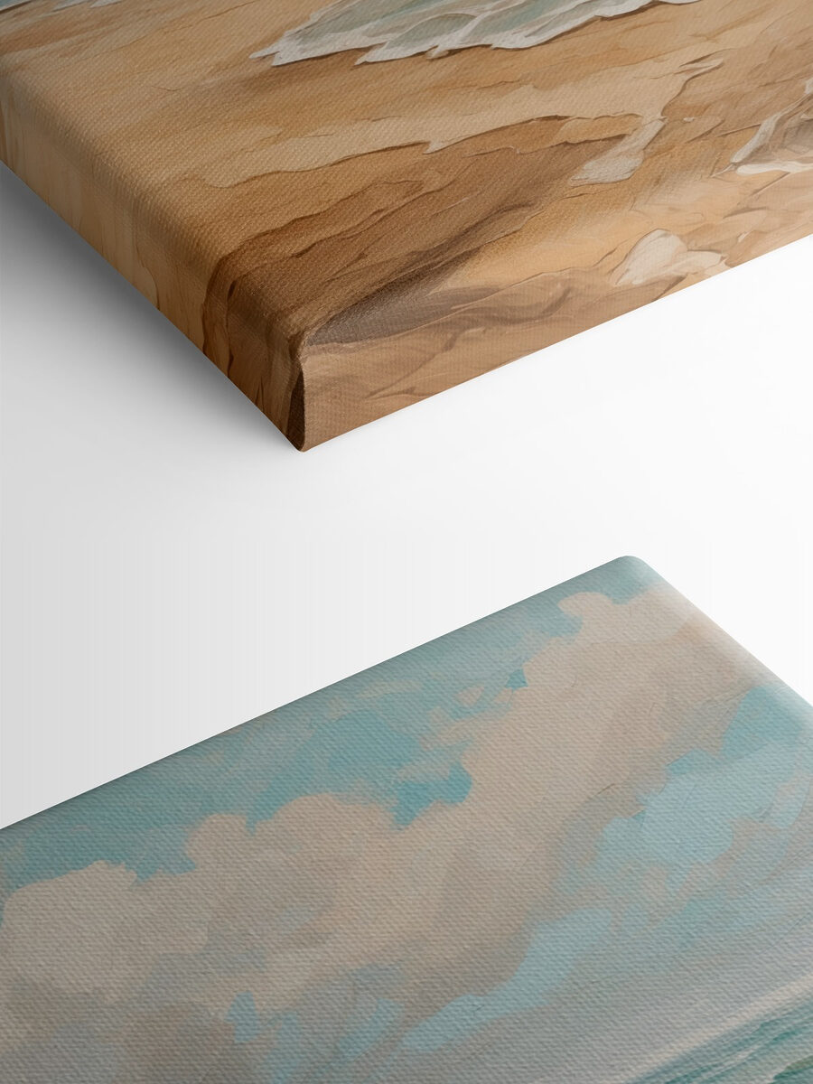 Haal het strandgevoel in huis met deze prachtige canvasprint! Hierop zijn de majestueuze golven te zien die op de kust beuken, als een symfonie van de natuur die een rustgevend deuntje speelt. Zie het al hangen in een gezellige woonkamer; je kunt het zachte zand tussen je tenen bijna voelen en de roep van meeuwen in de verte horen. Het is een dagelijkse herinnering aan zonnige dagen, zelfs als het weer niet meewerkt. Bovendien voegt het een vleugje rust toe, waardoor het perfect is voor die momenten waarop je er even tussenuit wilt. Wie heeft er thuis geen behoefte aan een mini stranduitstapje?