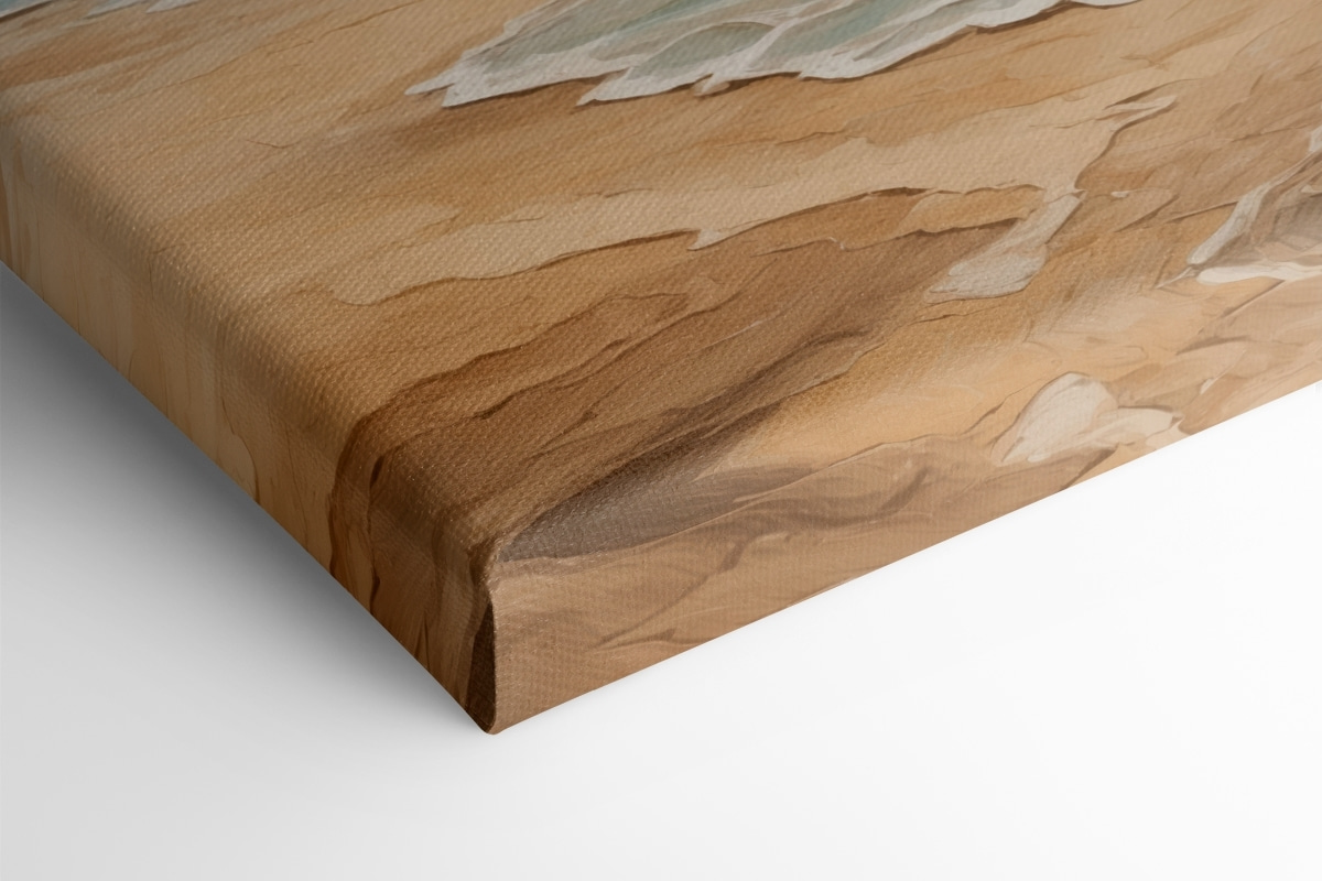 Haal het strandgevoel in huis met deze prachtige canvasprint! Hierop zijn de majestueuze golven te zien die op de kust beuken, als een symfonie van de natuur die een rustgevend deuntje speelt. Zie het al hangen in een gezellige woonkamer; je kunt het zachte zand tussen je tenen bijna voelen en de roep van meeuwen in de verte horen. Het is een dagelijkse herinnering aan zonnige dagen, zelfs als het weer niet meewerkt. Bovendien voegt het een vleugje rust toe, waardoor het perfect is voor die momenten waarop je er even tussenuit wilt. Wie heeft er thuis geen behoefte aan een mini stranduitstapje?