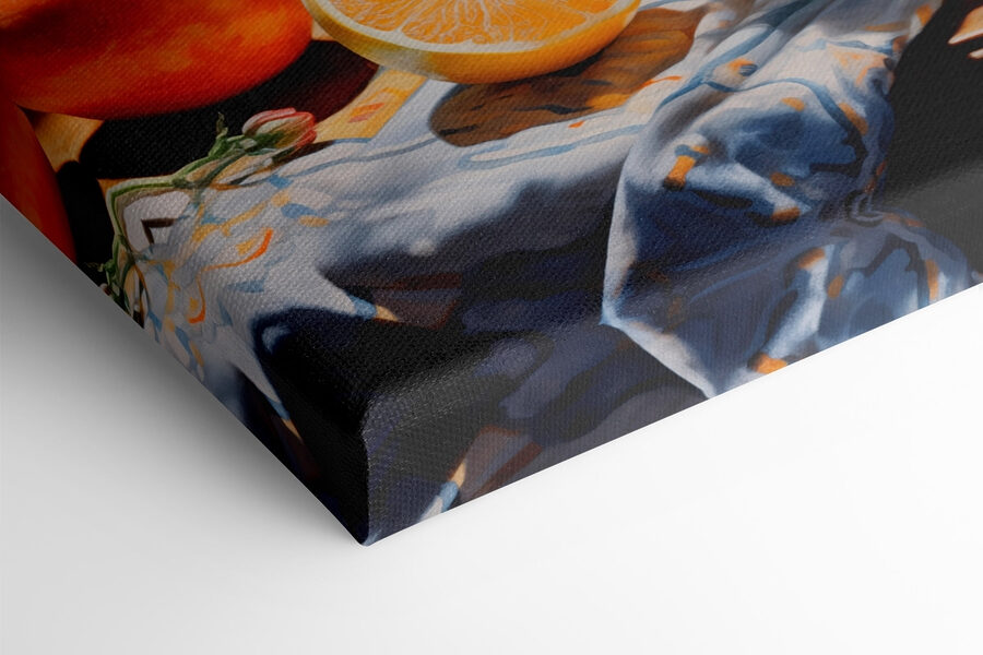 Verfraai je kamer met deze opvallende canvasprint “Stilleven met bloemen en fruit”. Het is als een stukje natuur, boordevol kleuren die iedereen aan het glimlachen maken. Stel je de zachte bloemblaadjes en het sappige fruit voor, die je uitnodigen voor een hapje. De weerspiegeling in de glazen kan geeft het hele tafereel een levendig gevoel – alsof je bijna het zachte gerinkel van de ijsblokjes tegen het glas kunt horen. Dit kunstwerk is perfect voor woonkamers of keukens en geeft elke muur een warme, uitnodigende uitstraling. Het is meer dan alleen decor; het is een dagelijkse herinnering om even stil te staan, aan de bloemen te ruiken en de simpele geneugten van het leven te waarderen. En wie wil er nu niet een vleugje bloemenflair? Hang hem op, schenk jezelf een drankje in en geniet van het uitzicht!