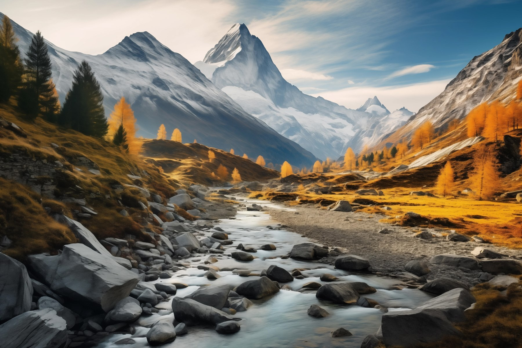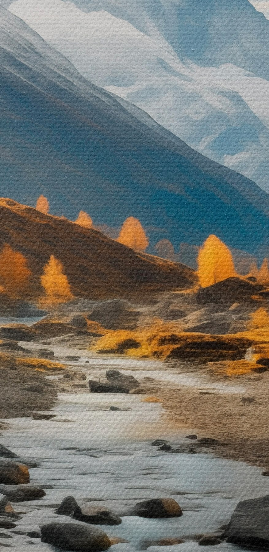 Verander elke muur in een serene ontsnapping met deze prachtige canvasprint van een rivier die door een vallei kronkelt, geflankeerd door majestueuze bergen. Stel je voor: het is een rustige namiddag, het zonlicht valt door de bomen en je geniet van de schoonheid van de natuur zonder je huis te verlaten. De zachte stroming van de rivier fluistert kalmte, terwijl die levendige herfstbladeren een vleugje warmte toevoegen die je hart doet glimlachen. Dit stuk is niet zomaar kunst; het is een uitnodiging om te dagdromen, te ontspannen en misschien zelfs die langverwachte wandeling te plannen. Perfect om elke ruimte verfrissend en levendig te maken!