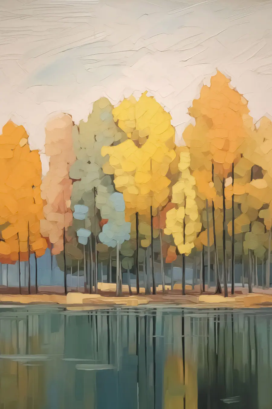 Transformeer je ruimte met deze prachtige canvasprint, “Canvas Schilderijen Schilderij van Bomen bij Water”. Stel je een wandeling voor door een herfstbos waar de bladeren hun helderste kleuren dragen, bijna als confetti uit de natuur. De levendige gelen en zachte groenen dansen samen en weerspiegelen op het kalme water als een dromerige dagdroom. Het geeft een vredig gevoel, alsof je met een warme kop thee aan een meer zit en alles in je opneemt. Perfect voor dat knusse hoekje of misschien boven een open haard. Laat dit kunstwerk sereniteit in je huis fluisteren, zodat elke blik voelt als een zachte knuffel van de natuur.