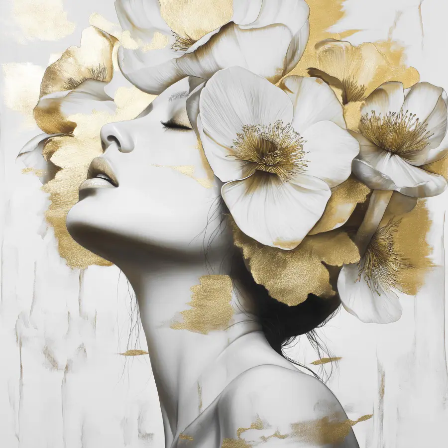 Maak van elke kamer een serene plek met deze betoverende canvasprint van een vrouw met bloemen in haar haar. Stel je een muur voor die rust uitstraalt en uitnodigt tot glimlachen en een gevoel van vrede. De frisse bloemen en sierlijke lijnen creëren een sfeer die zowel elegant als een beetje speels is. Stel je voor dat je langsloopt en een glimp opvangt – net genoeg om even stil te staan en adem te halen. Het is alsof je een tuin hebt die het hele jaar door bloeit, zonder dat je water hoeft te geven. Perfect voor gezellige ruimtes of een kunstcollectie die een vleugje eigenzinnigheid nodig heeft, voegt dit stuk persoonlijkheid toe zonder poespas. Een mooie herinnering om schoonheid te omarmen in alledaagse momenten.