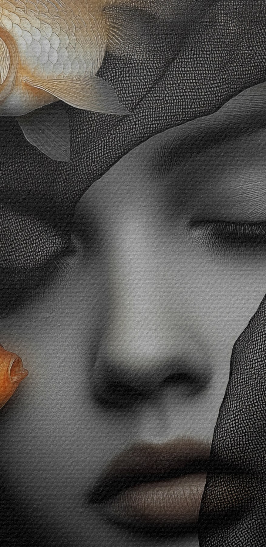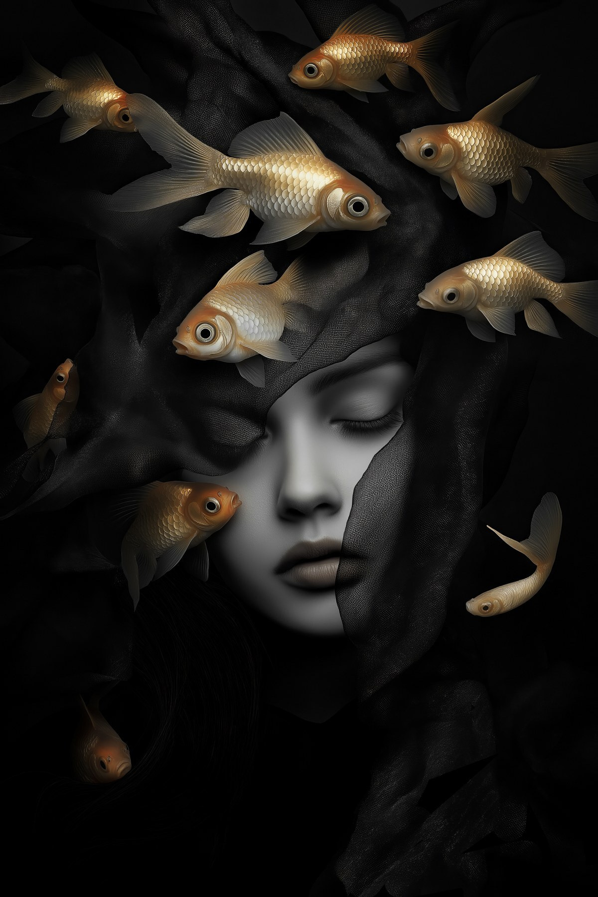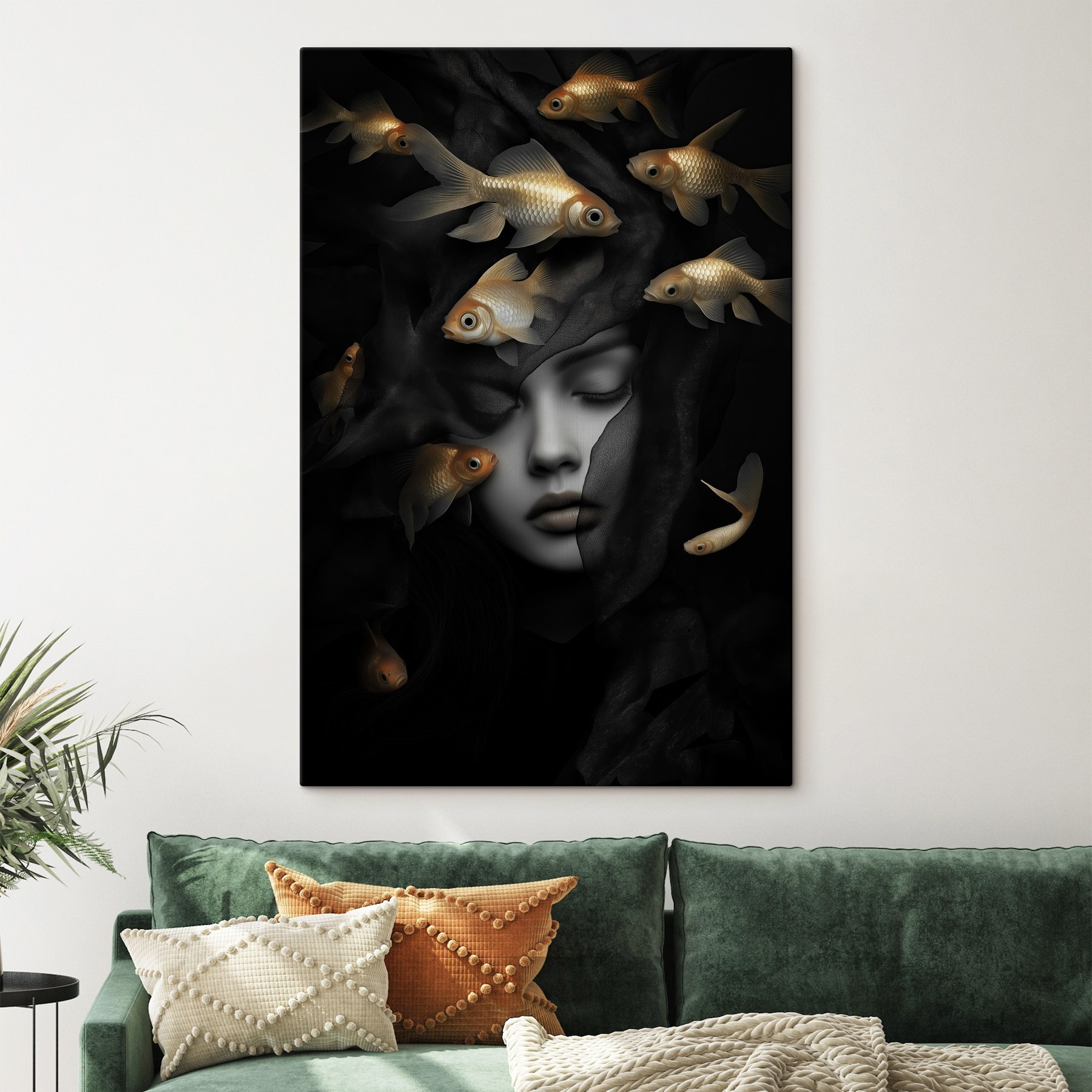 Maak kennis met “Canvas Schilderijen Floating Dreams and Silent Whispers”, een prachtig stuk dat uitnodigt tot een gevoel van rust in je interieur. Stel je dit eens voor: een sereen gezicht dat tevoorschijn komt uit schimmige diepten, versierd met sierlijke vissen die lijken te zweven in een dromerige harmonie. Het is als een portaal naar een andere wereld, waar elke blik een nieuw gevoel oproept. Deze kunst is perfect voor een knus hoekje of het middelpunt van een woonkamer en is een balans tussen eigenaardigheid en mysterie. Vrienden zullen misschien vragen om wat langer te blijven hangen, aangetrokken door de betoverende allure. Laat dit doek een vleugje verbeelding en rust brengen aan je muren!