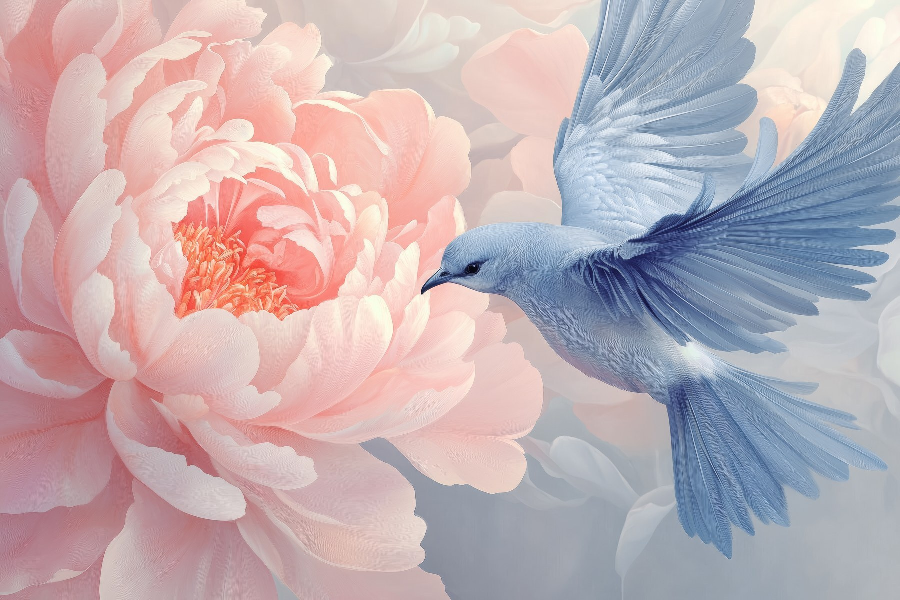Tover elke kamer om in een vredig toevluchtsoord met deze betoverende canvasprint, “Vogel vliegt naast een bloem”. Stel je deze lieve vogel voor, vliegend in je woonkamer, met zijn zachtblauwe veren die perfect passen bij de bloesem van een bloeiende pioenroos. Het is als een vriendelijke herinnering van de natuur om diep adem te halen en de schoonheid in je op te nemen. Hang hem in je kamer en opeens is het niet alleen maar een muur, maar ook een gespreksonderwerp. Vrienden zullen even stilstaan, glimlachen en misschien zelfs een vleugje reislust voelen. Perfect voor die gezellige avonden waarop je wilt ontsnappen in de omarming van de natuur zonder je stoel te verlaten. Een heerlijke mix van serene kleuren die fris aanvoelt, als een lentebriesje op een luie zondag. Voeg een vleugje eigenzinnigheid toe aan je inrichting!