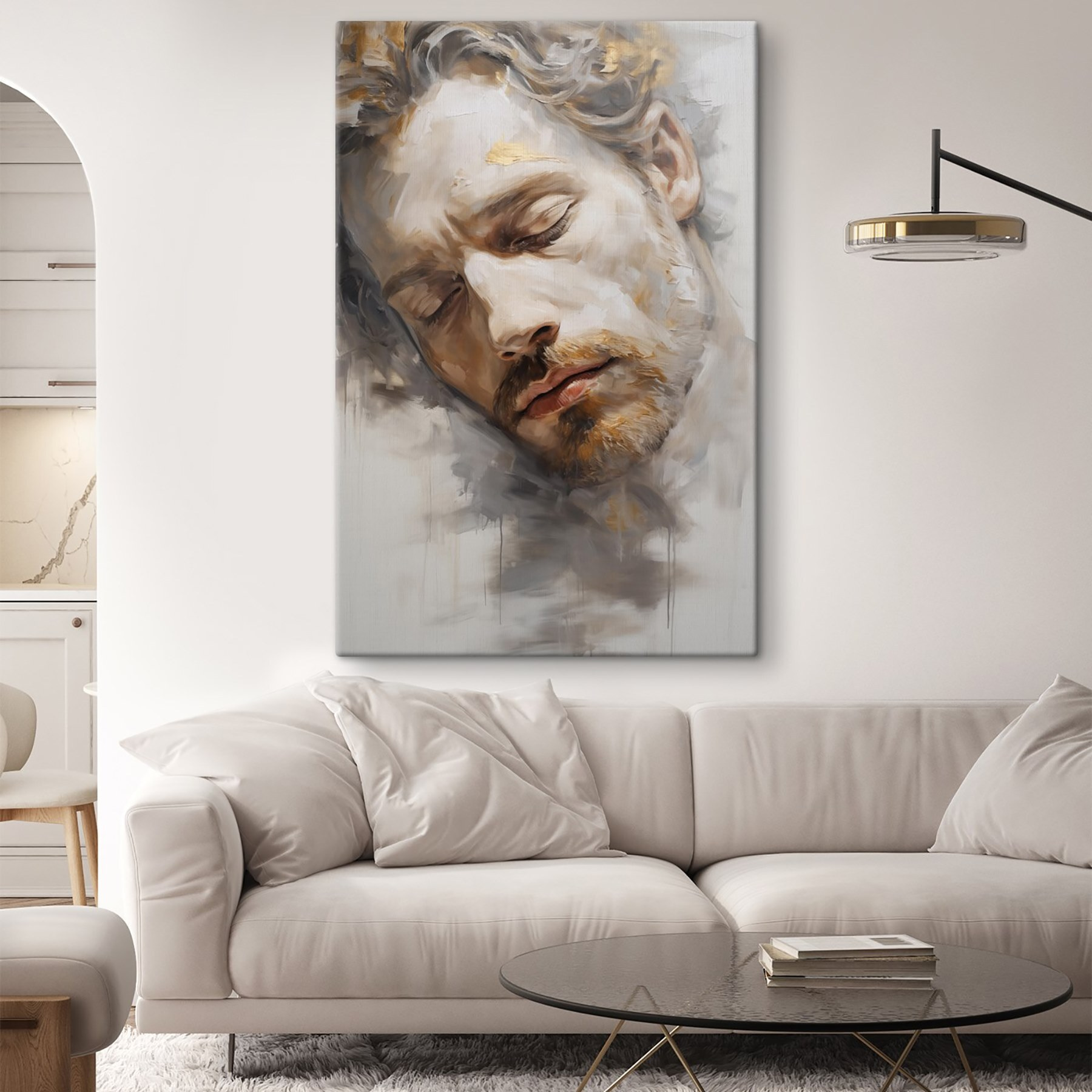Duik in een moment van serene rust met “Dromerige uitdrukking op een rustig gezicht”. Deze prachtige canvasprint vangt de zachte schoonheid van een vredige ziel en nodigt warmte en ontspanning uit in elke ruimte. Stel je voor dat je een kamer binnenloopt en onmiddellijk begroet wordt door de zachte kleuren en fijne penseelvoering van dit kunstwerk – het is als een knuffel voor je muren!